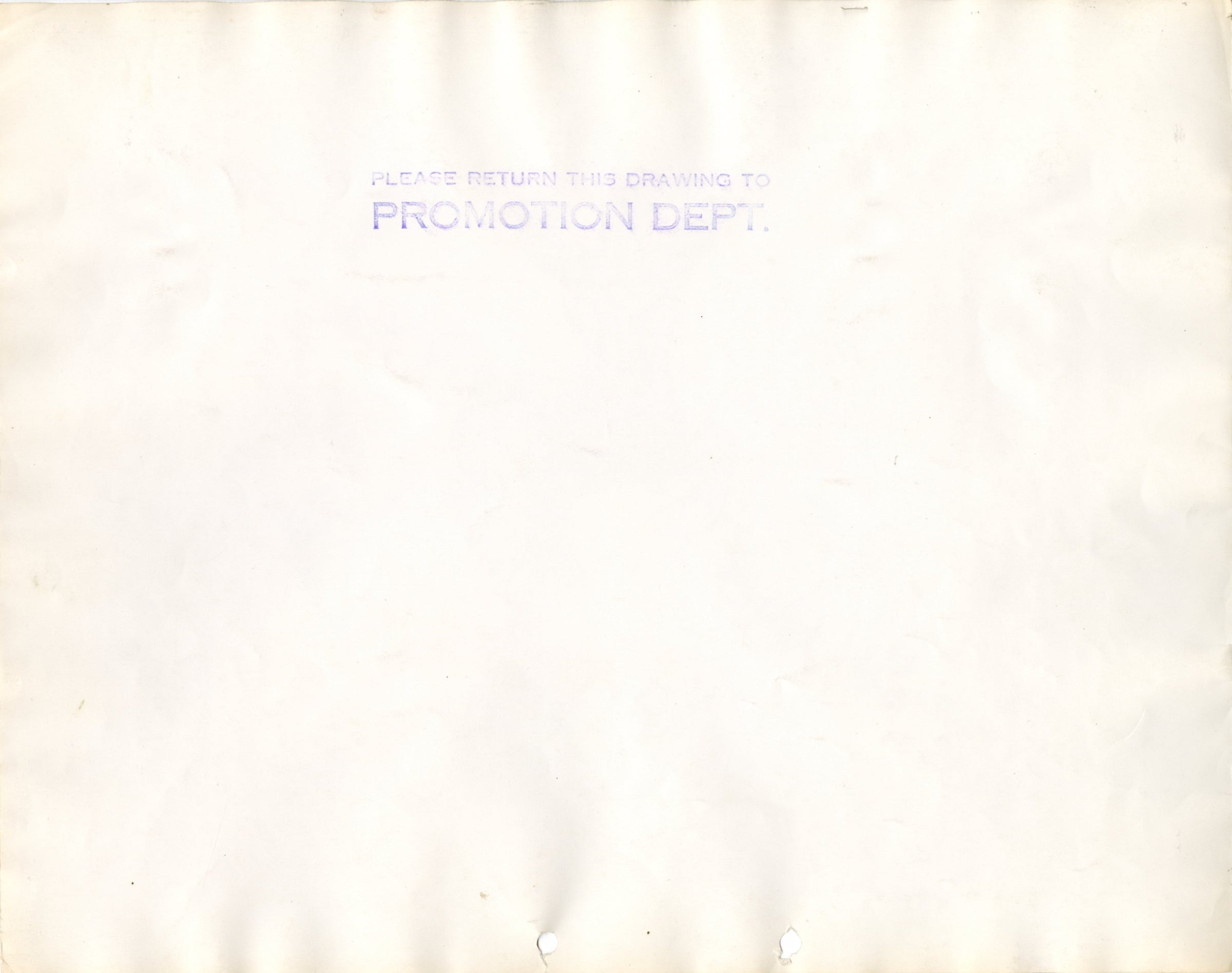 SPECIAL NOTES: A stamp reading "PLEASE RETURN THIS DRAWING TO PROMOTION DEPT." is visible on the back of this model sheet.