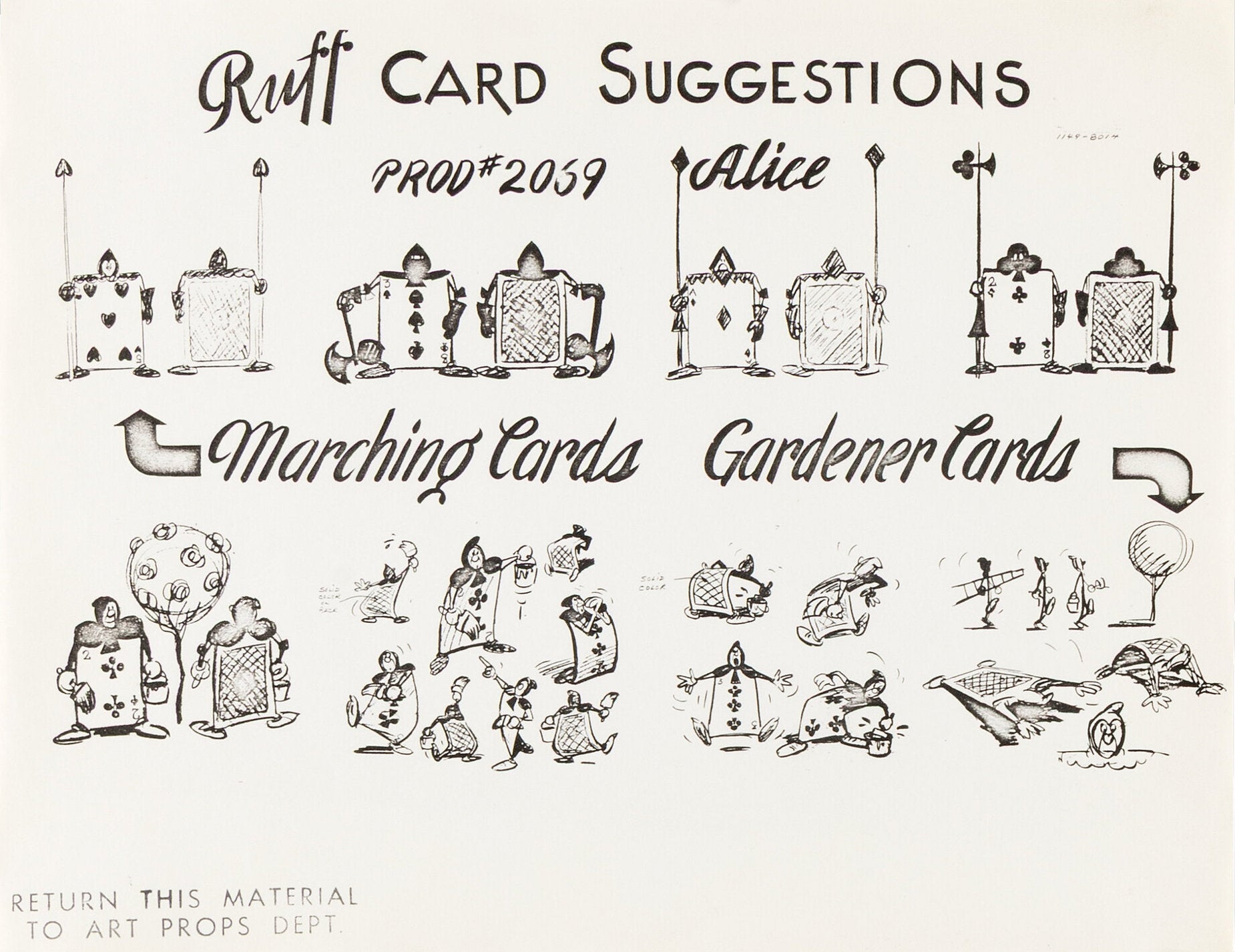 NOTES: A "RETURN THIS MATERIAL TO ART PROPS DEPT." stamp has been reproduced in the lower left corner of this model sheet.