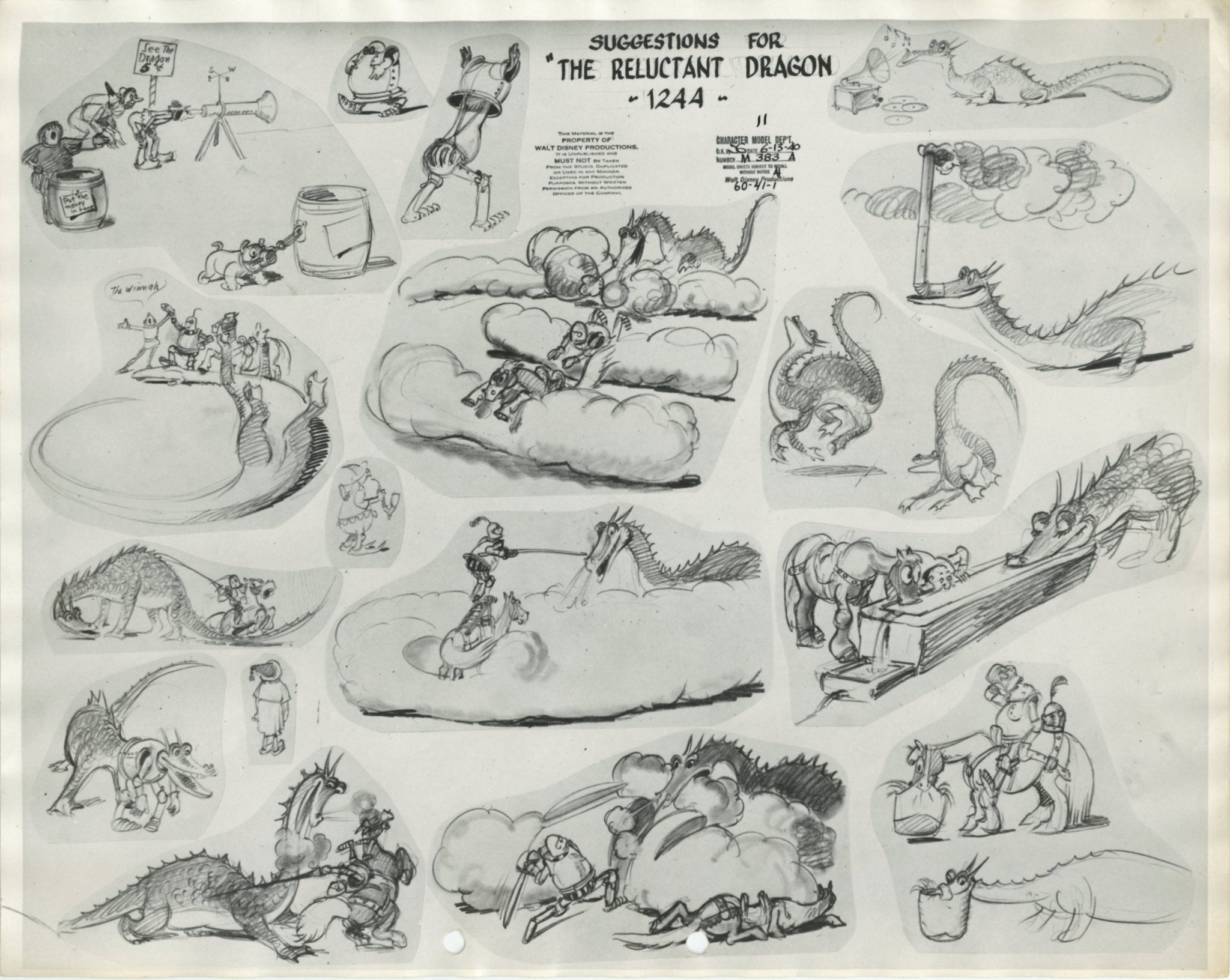 ABOUT THE IMAGE: The Reluctant Dragon is a 1941 American film produced by Walt Disney, directed by Alfred Werker, and released by RKO Radio Pictures on June 27, 1941. Essentially a tour of the then-new Walt Disney Studios facility in Burbank, California, the film stars radio comedian Robert Benchley and many Disney staffers such as Ward Kimball, Fred Moore, Norman Ferguson, Clarence Nash, and Walt Disney, all as themselves.