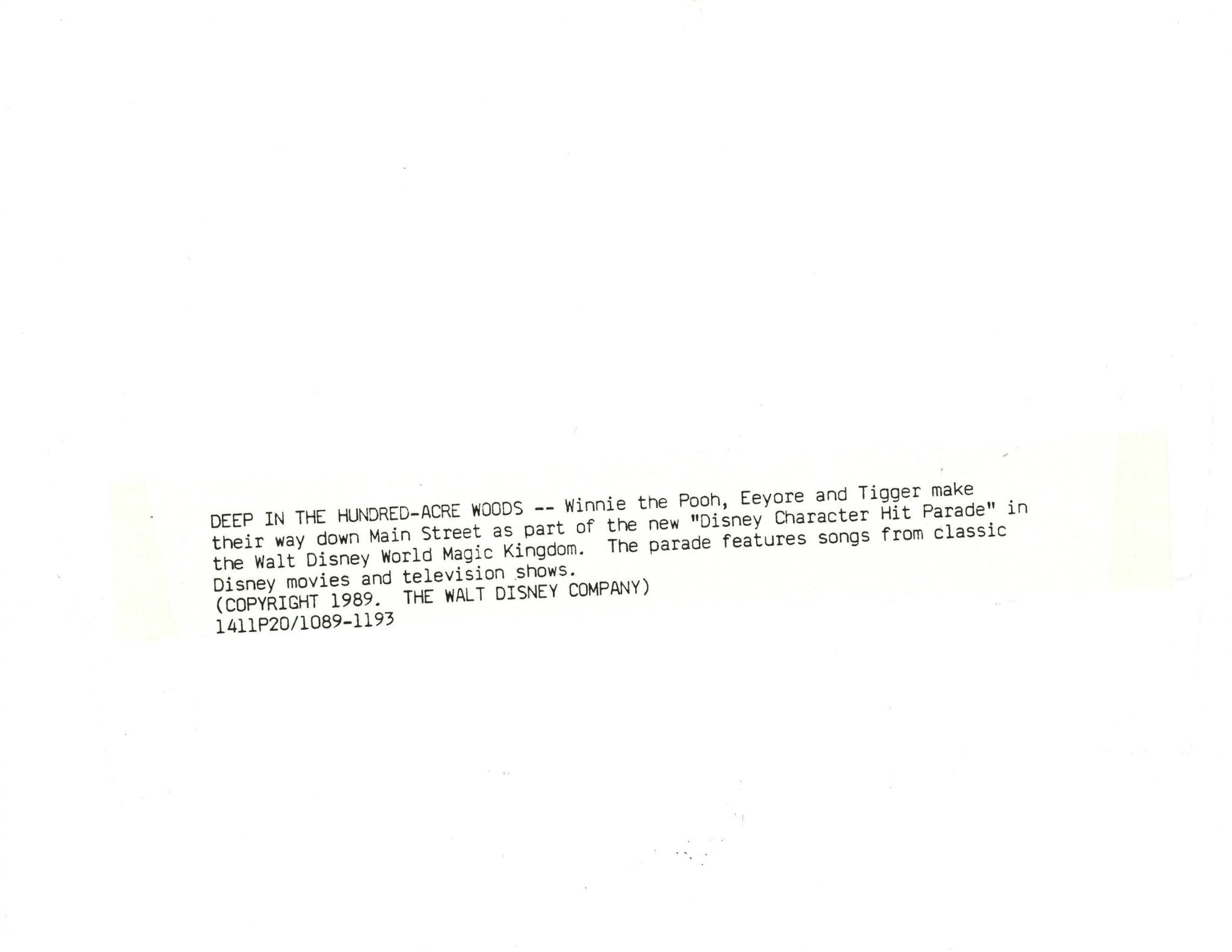 Disney Publicity Photo (1989): Pooh, Eeyore, Tigger