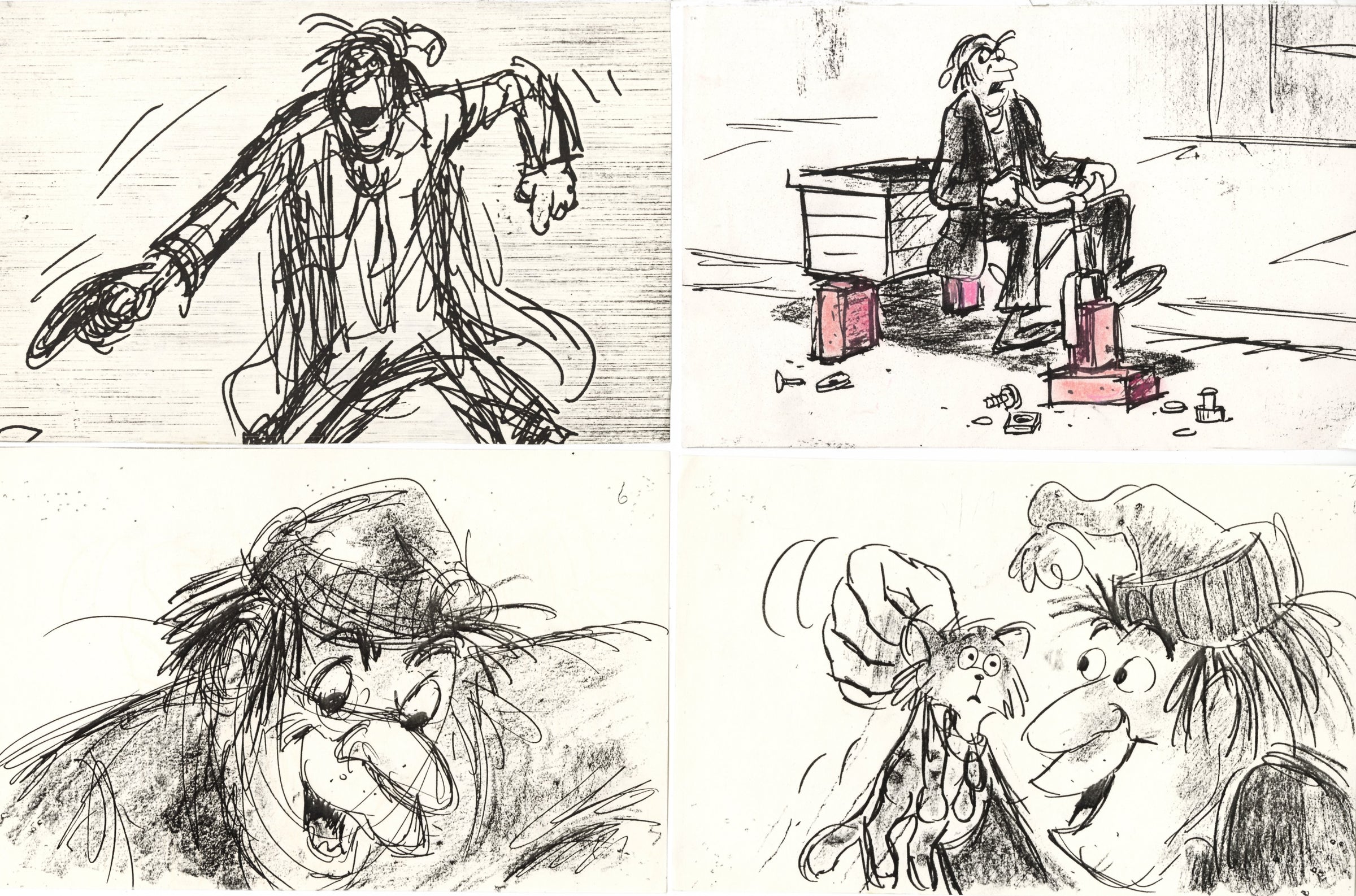 Oliver & Company Photostat Storyboard Drawings (Set of 4): Fagin, Oliver