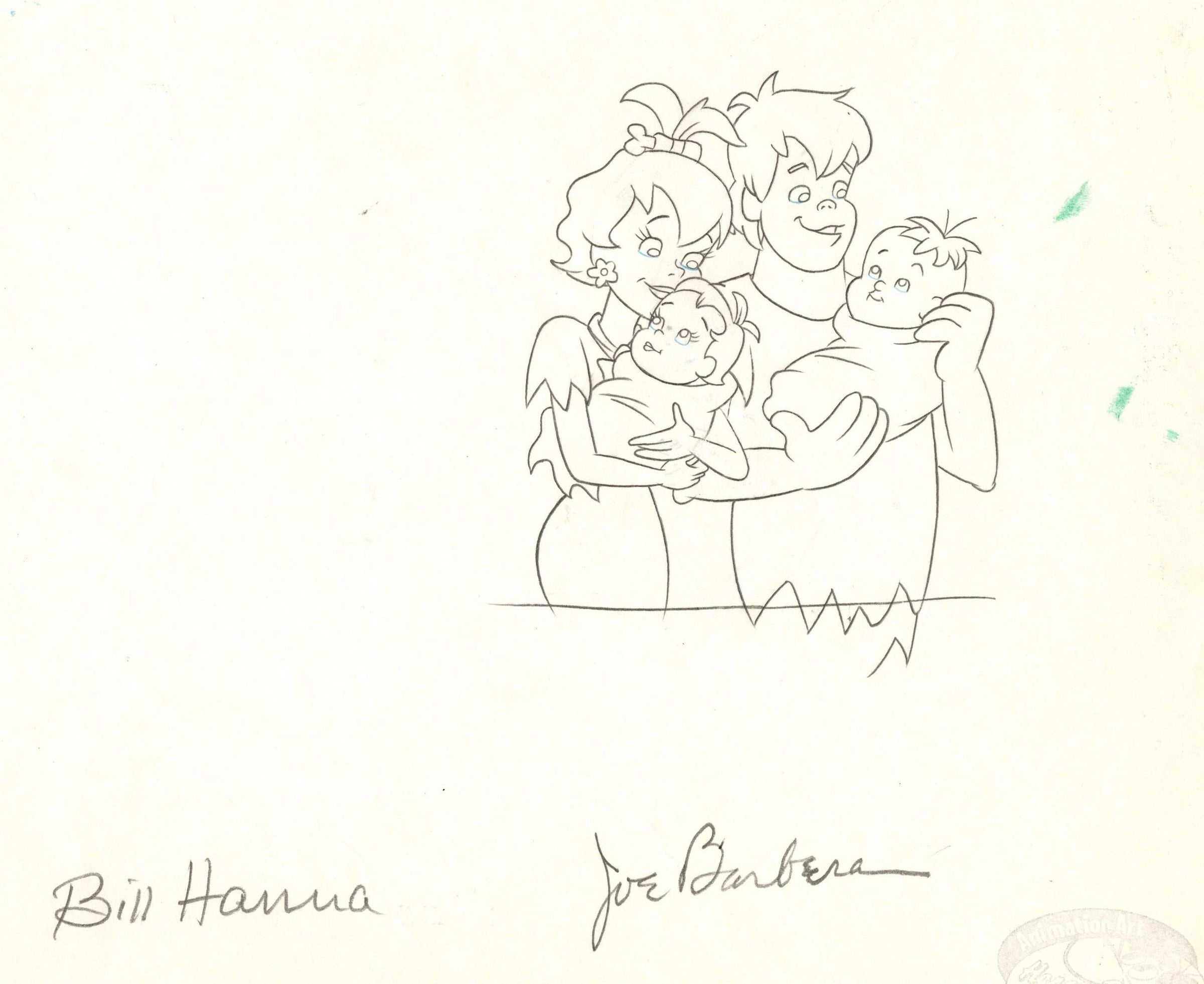 Hollyrock-A-Bye Baby Original Production Drawing Signed by Bill Hanna and Joe Barbera: Pebbles, Bamm-Bamm
