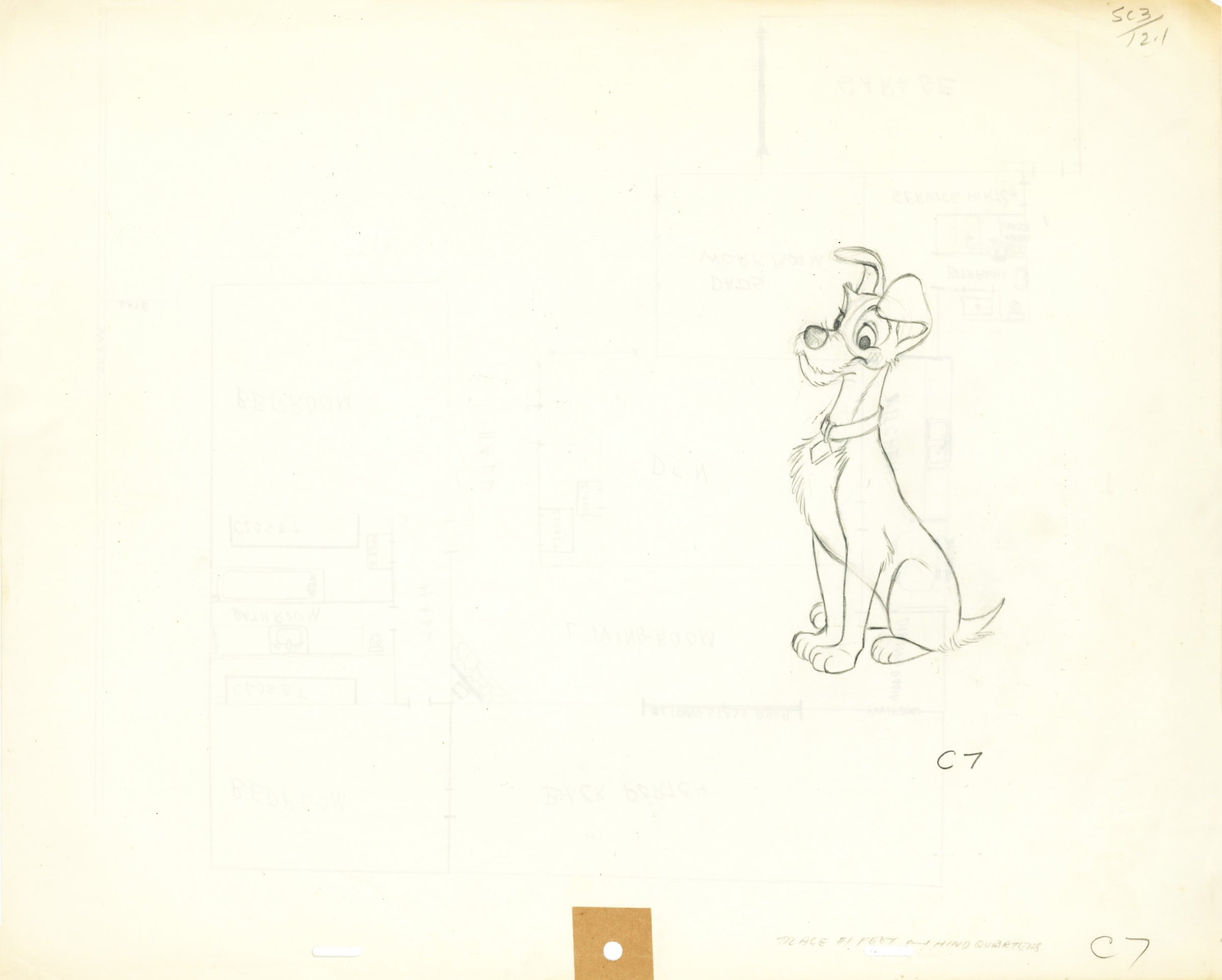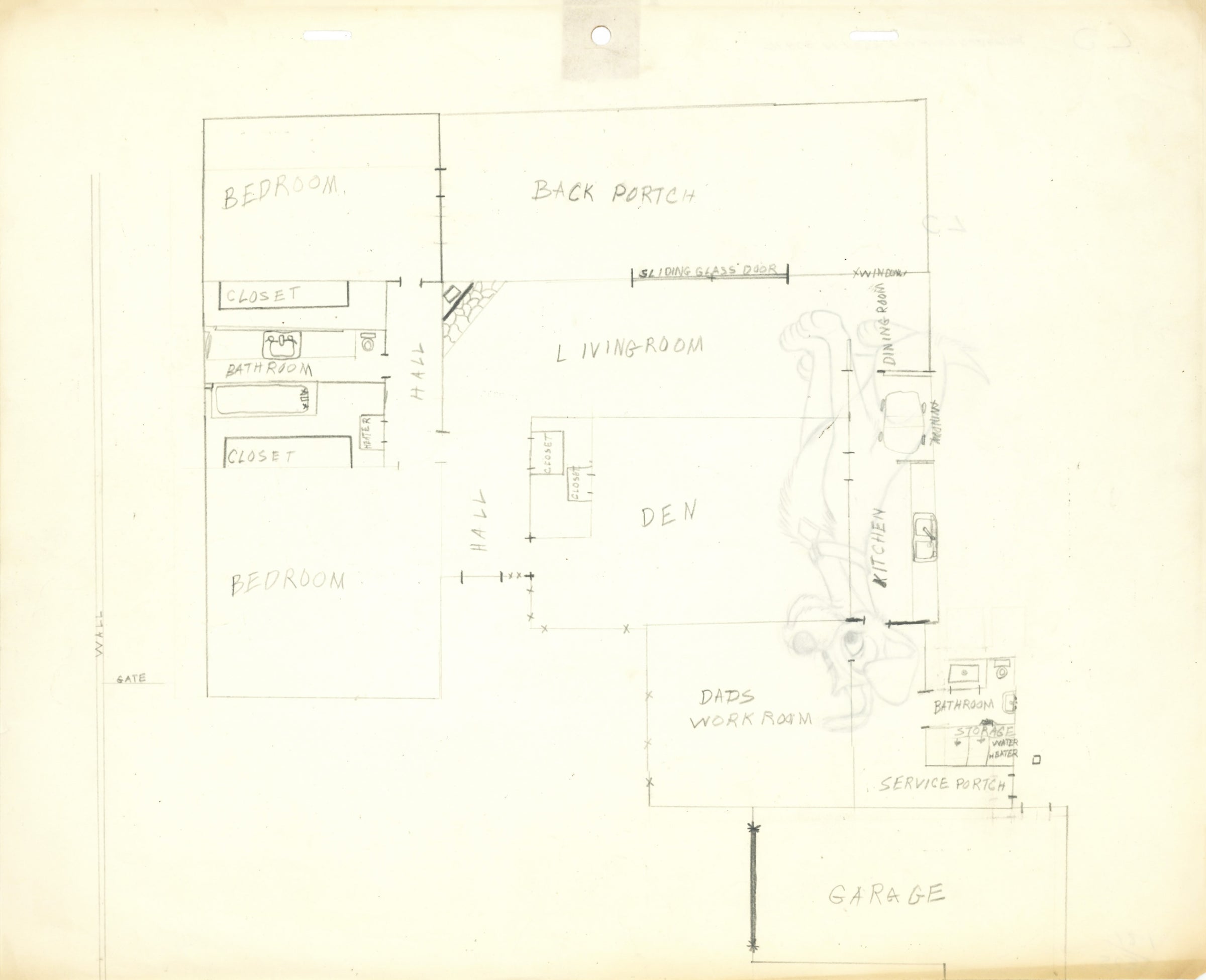 NOTES: This piece has signs of light production wear including edge wrinkling. A top down house layout has been drawn in graphite on the back of the drawing by an unknown individual.