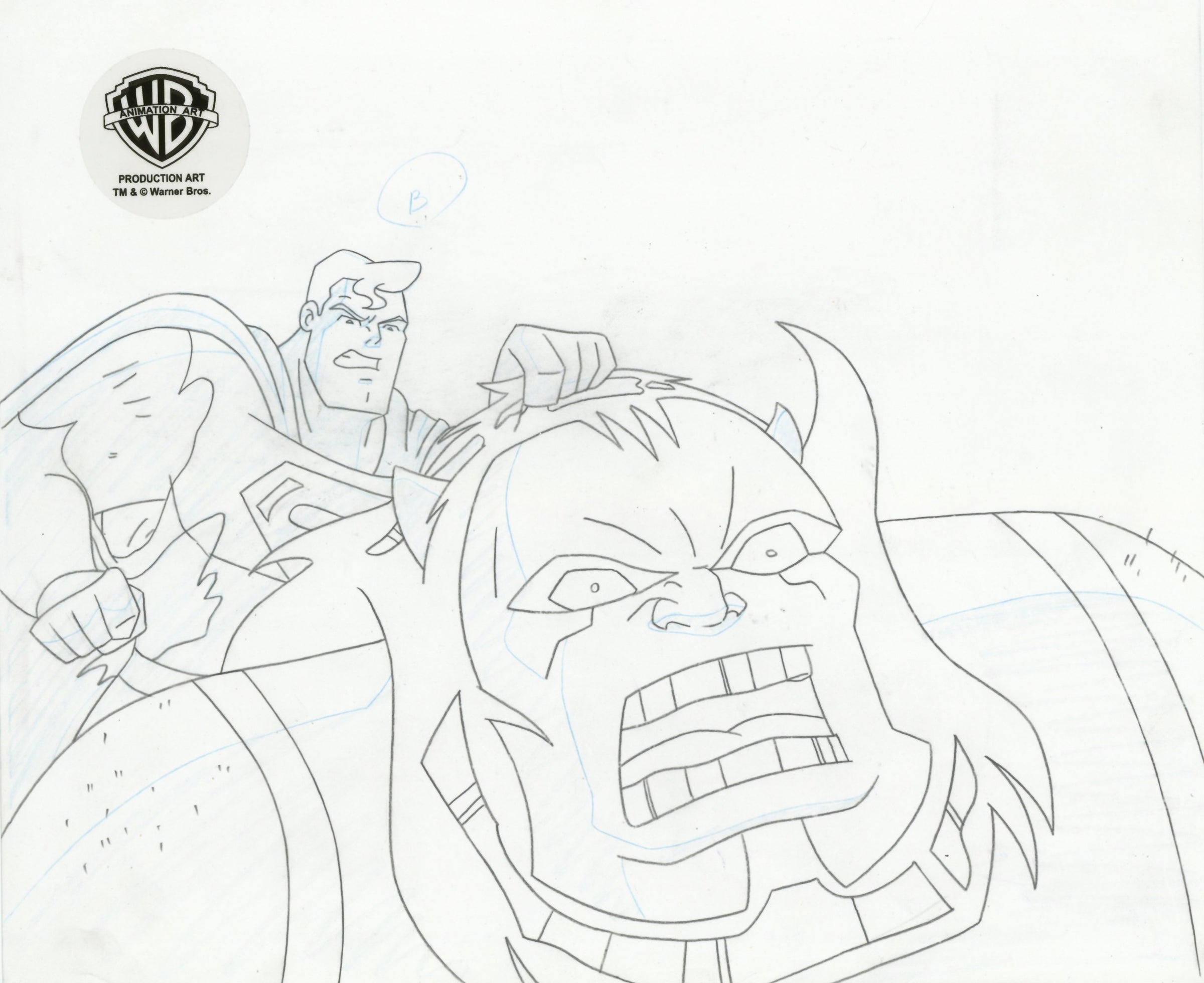 Superman The Animated Series Original Production Cel with Matching Drawing: Superman, Kalibak