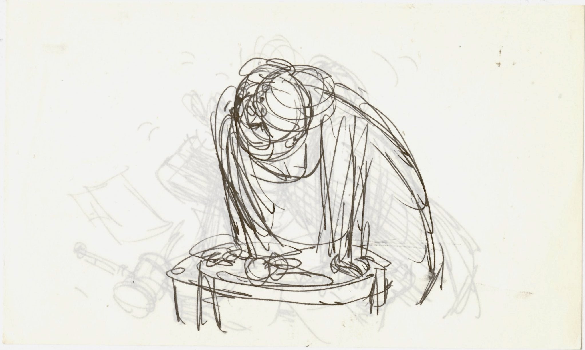 These pieces include an additional drawing on the back of one piece and may have typical production wear including pinholes, minor edge tears, and faint smudging.