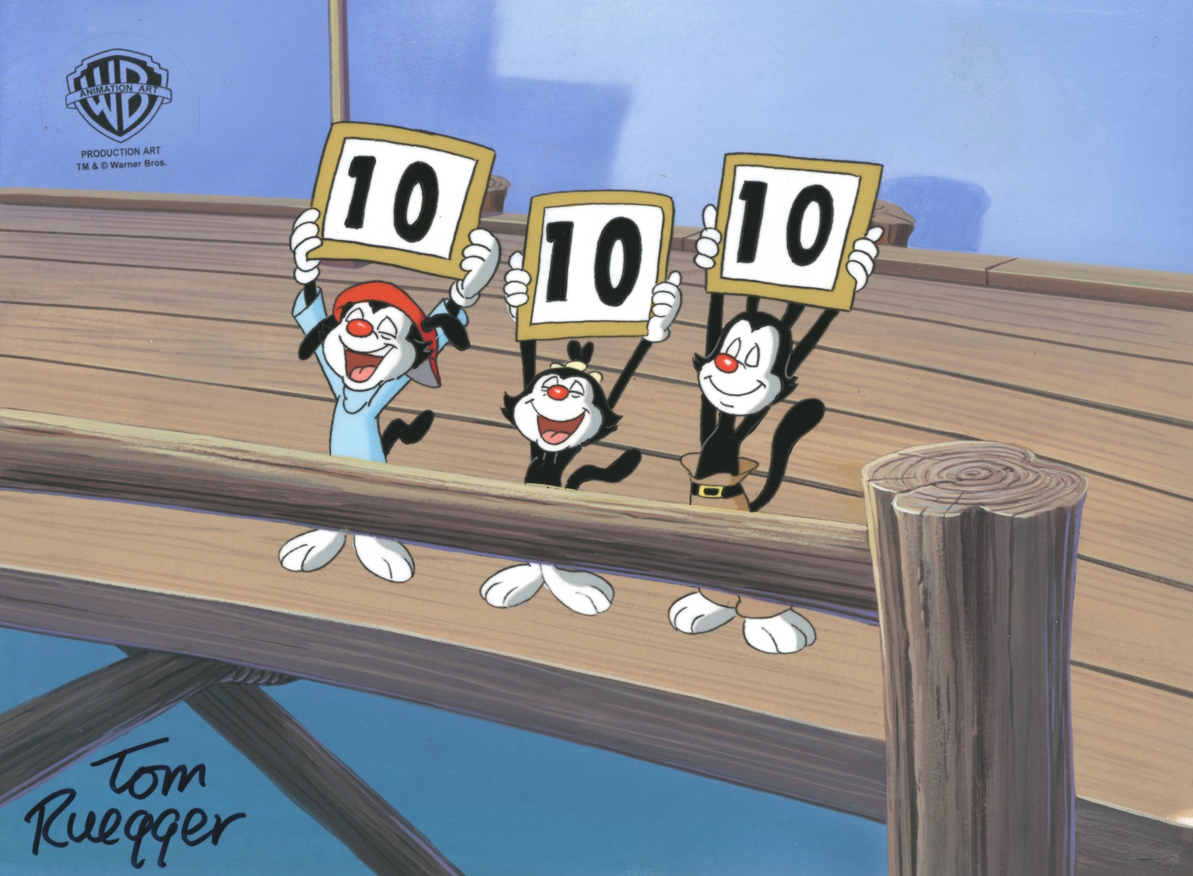 ABOUT THE IMAGE: Blending wit, slapstick and pop culture references, the variety show Animaniacs, created by Tom Ruegger and executive produced by Steven Spielberg, features a large cast of characters, whose predominant personalities are the Warner siblings, Yakko, Wakko, and their sister, Dot, who have a great time creating havoc and mayhem in the lives of everyone they meet. The series, which originally ran from 1993 through 1998, also features a number of comedic educational segments, often in musical form. This piece comes with a certificate of authenticity.
