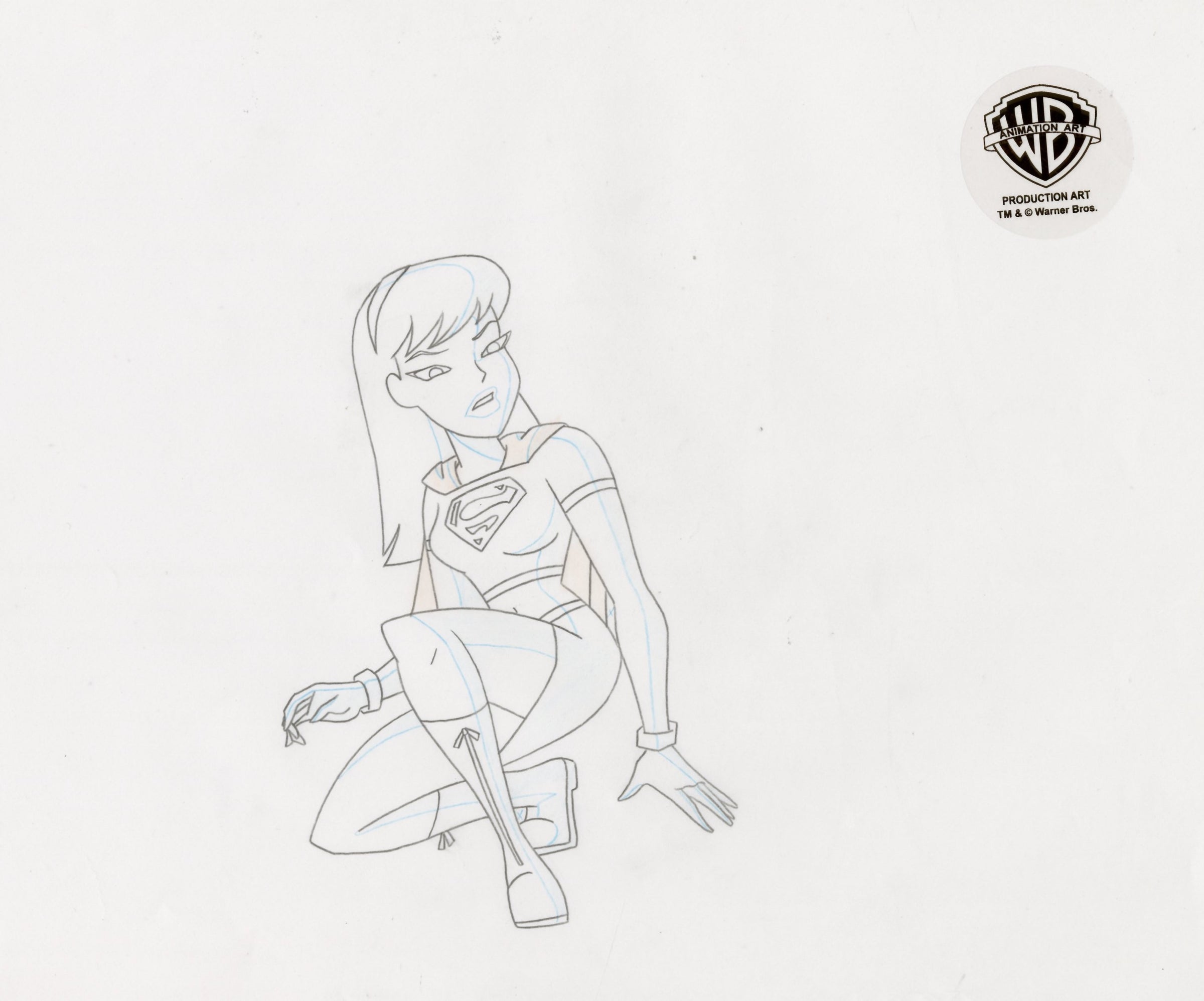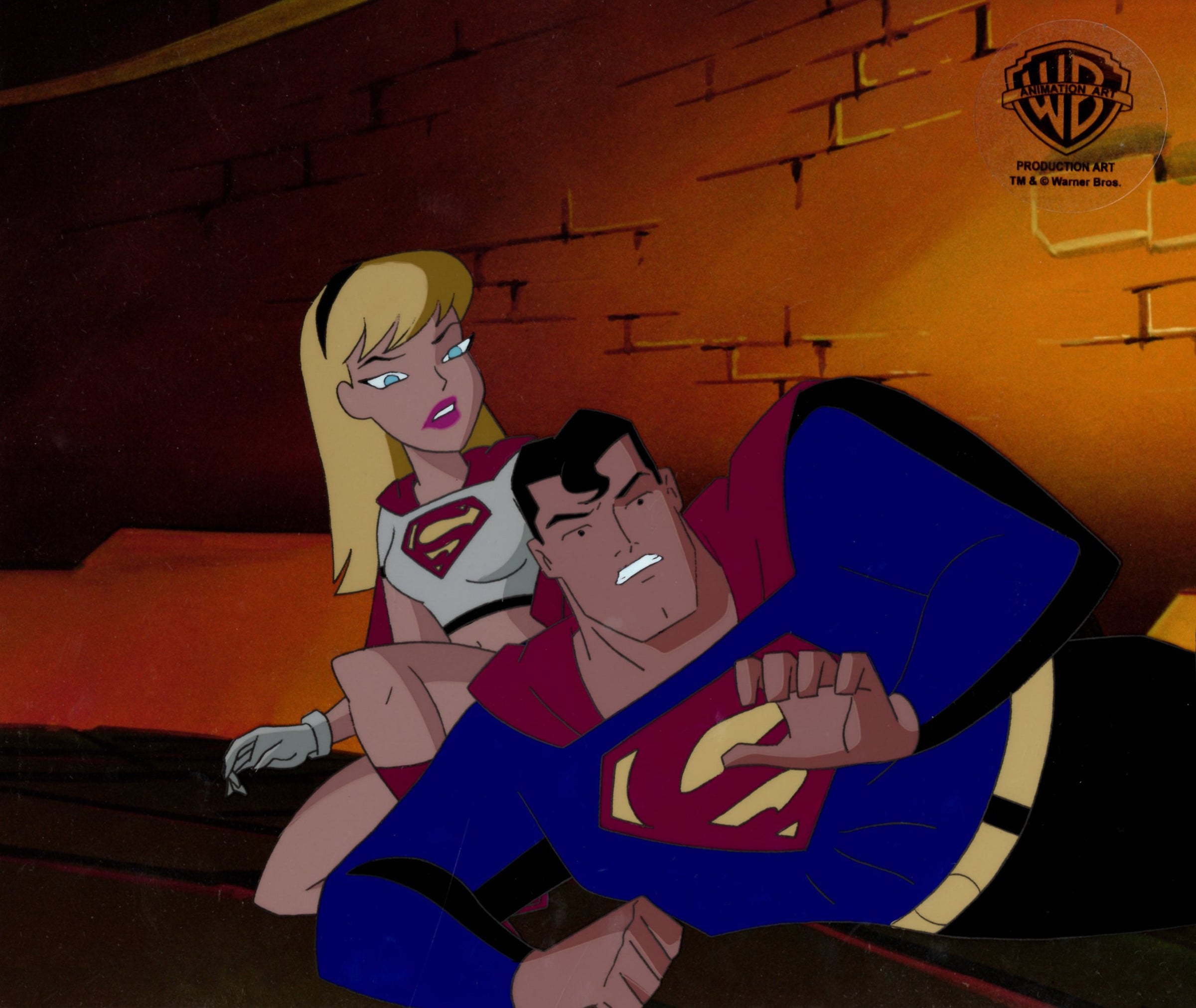 Superman The Animated Series Original Production Cel with Matching Drawing: Superman, Supergirl