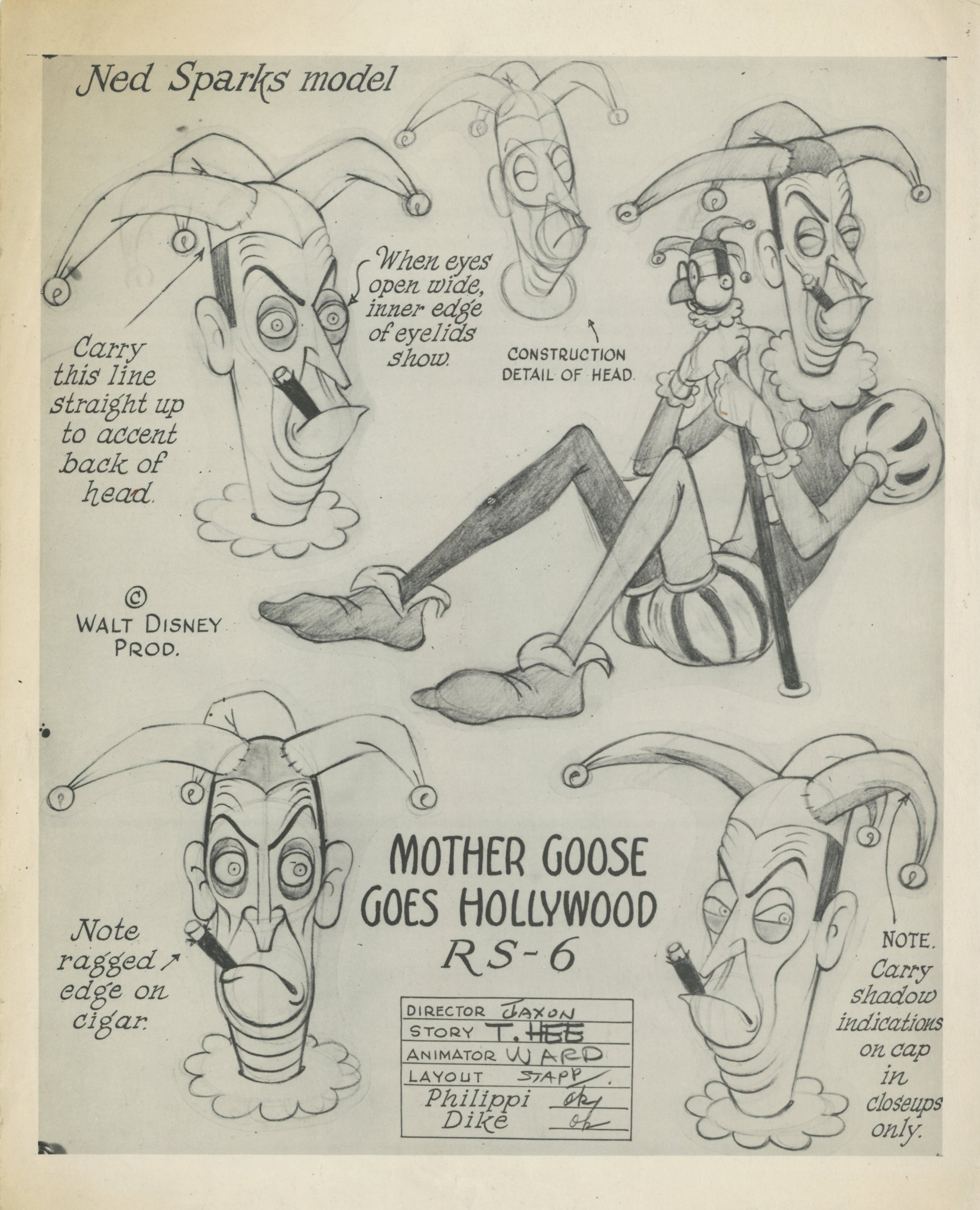 Mother Goose Goes to Hollywood Original Stat Model Sheet: Ned Sparks