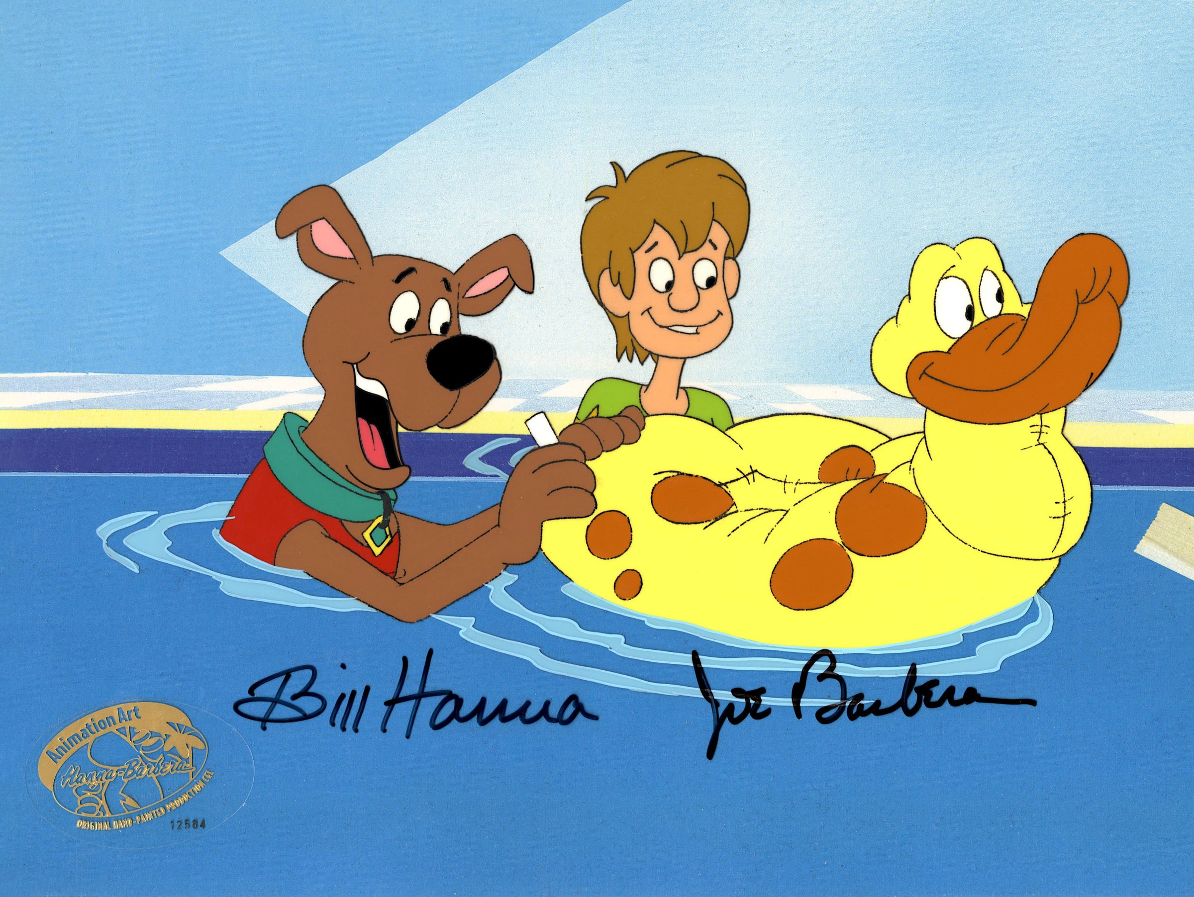 A Pup Named Scooby-Doo Original Production Cel Signed by Bill Hanna and Joe Barbera: Shaggy, Scooby