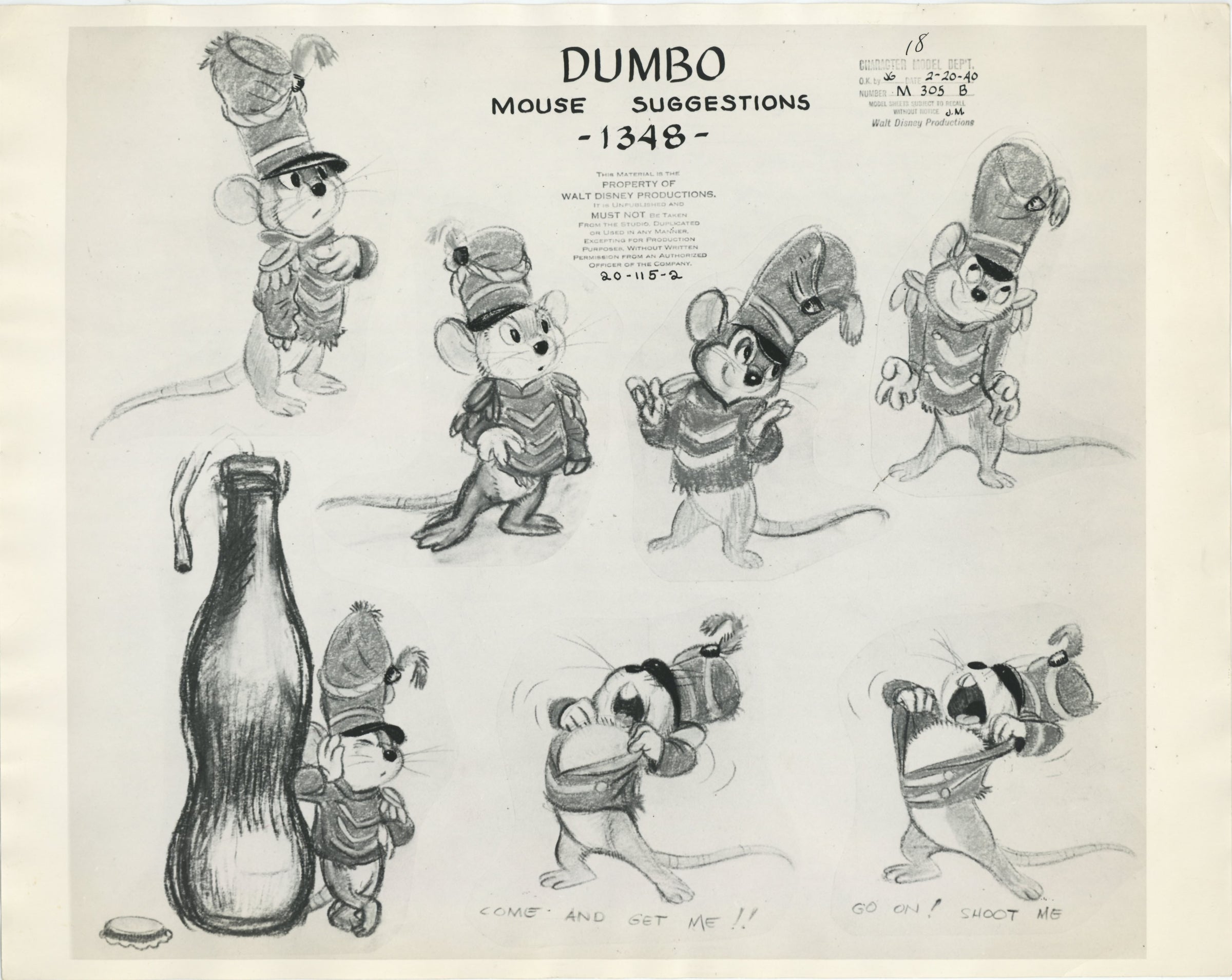 This piece shows signs of light production wear: wrinkling along edges. The embedded date on this model sheet reads February 20th, 1940.