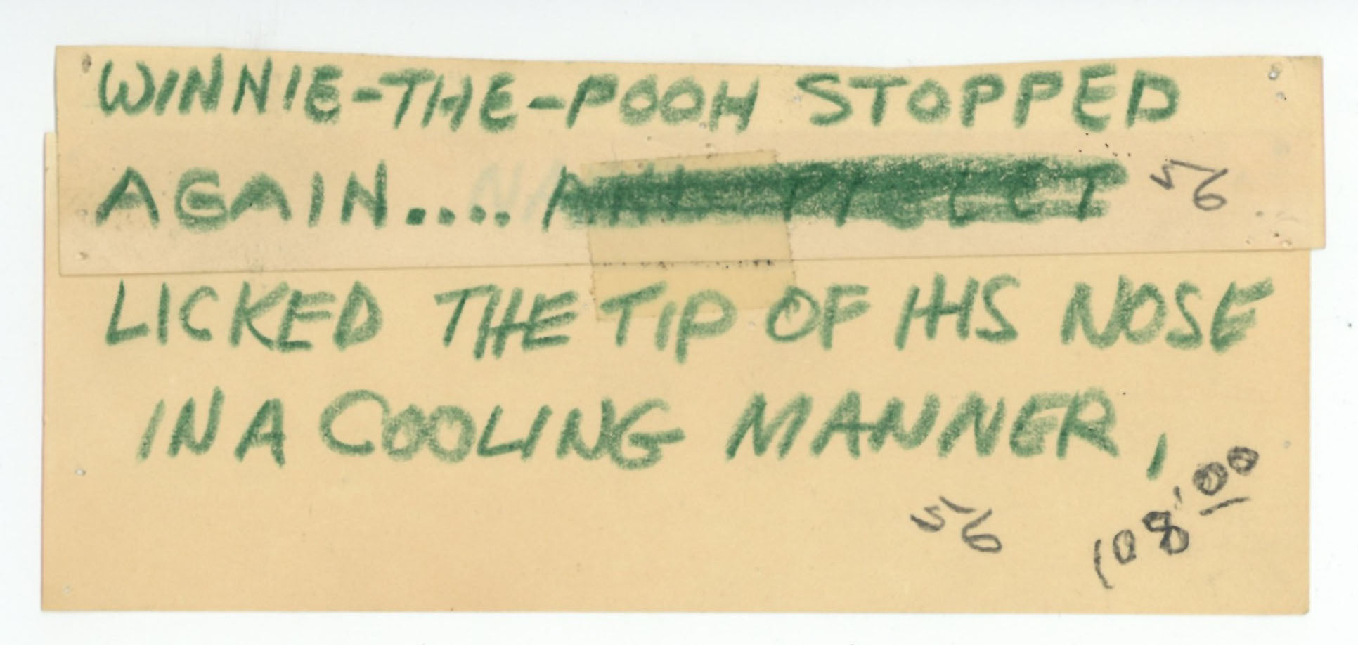 MEDIUM: Original Storyboard Drawing (Double-Sided) with Matching Dialogue Tag IMAGE SIZE:6" x 4.5" PRODUCTION: Winnie the Pooh and Tigger Too, 1974 SKU:CCV1875