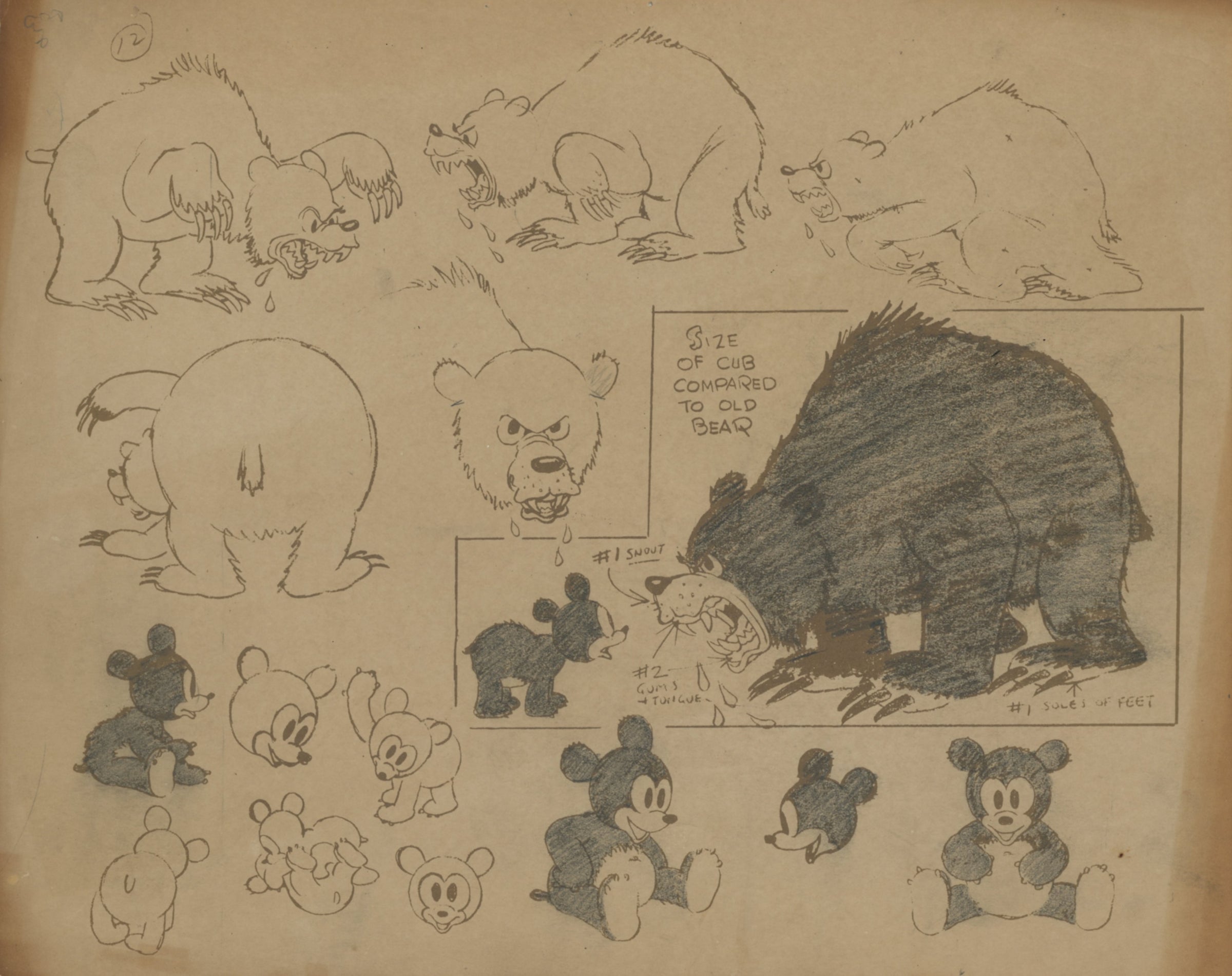 ABOUT THE MEDIUM: Photostat Model Sheets are reference guides used by animators to ensure consistency in character design, proportions, and expressions throughout a film. These printed sheets typically feature multiple poses, facial expressions, and turnarounds of a character, often photocopied from finalized drawings by lead animators. Model sheets help maintain uniformity in animation by providing a standard reference for all artists working on a character, preventing visual discrepancies between different scenes.