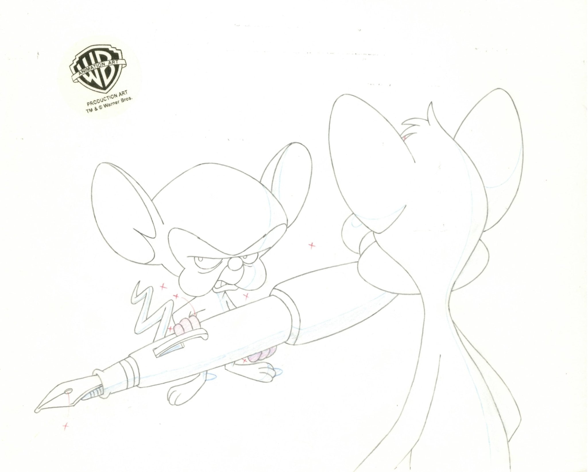 ABOUT THE IMAGE: Pinky and the Brain is a cartoon that follows a self-proclaimed genius, The Brain, and his dimwitted sidekick, Pinky, as they try to conquer the world. Pinky and the Brain was the first animated television series to be presented in Dolby Surround. It was created by Tom Ruegger and the fourth collaboration between Steven Spielberg's production company, Amblin Entertainment and Warner Bros. Animation. The characters first appeared in 1993 as a recurring skit on the show Animaniacs. Thanks to its popularity it was later spun off as a series. There were 66 episodes produced. This piece comes with a certificate of authenticity.