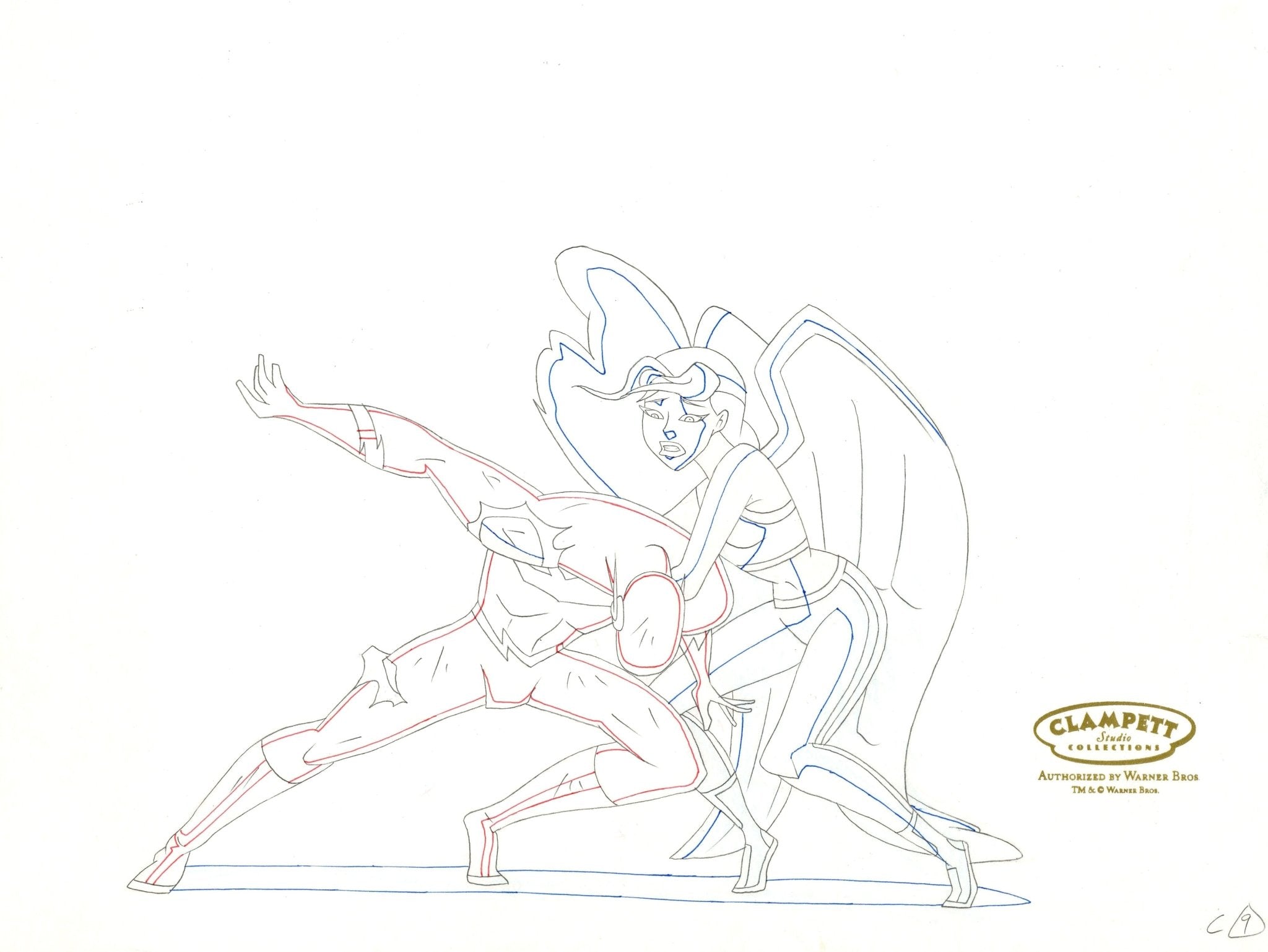 Justice League Unlimited Original Production Drawing: Hawkgirl, Flash