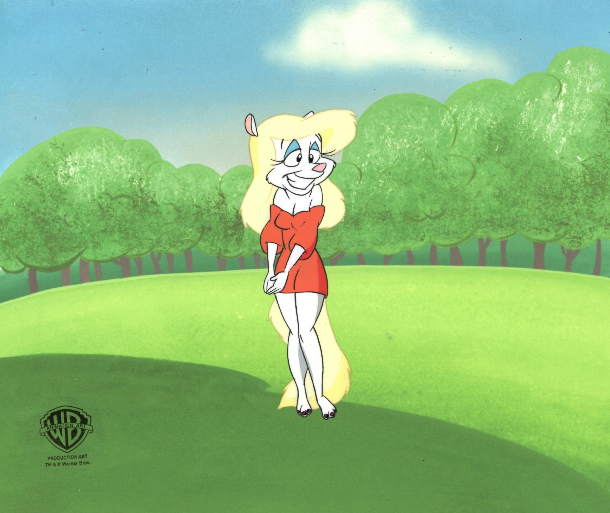 ABOUT THE MEDIUM: Original production cels are one-of-a-kind pieces of art that were used in the creation of an animated film or television show. Each has been hand-painted by studio artists on a piece of celluloid acetate, and has been photographed over a background painting to create a frame of the finished production.