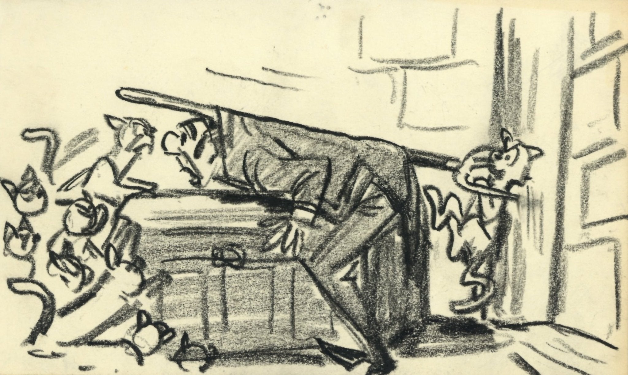 Aristocats Original Storyboard Drawing: Edgar, Alley Cats