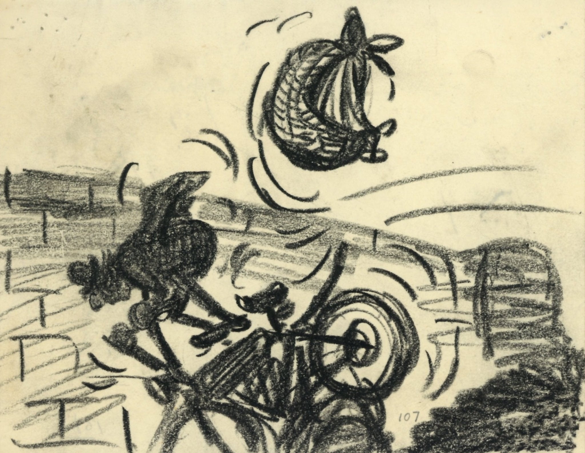 ABOUT THE IMAGE: This storyboard showcases the creativity involved in the making of The Aristocats. It was created for scene starting at about 19:49, where Edgar loses Duchess and her kittens on his bicycle. The artist of this storyboards is thought to be Vance Gerry (1929 - 2005), a storyboard, layout, and character artist at Disney for nearly 50 years.