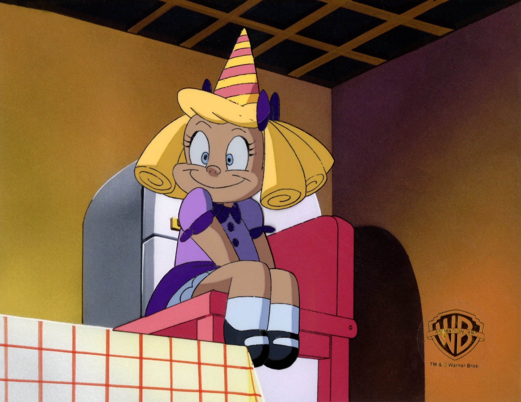 ABOUT THE MEDIUM: Original production cels are one-of-a-kind pieces of art that were used in the creation of an animated film or television show. Each has been hand-painted by studio artists on a piece of celluloid acetate, and has been photographed over a background painting to create a frame of the finished production.