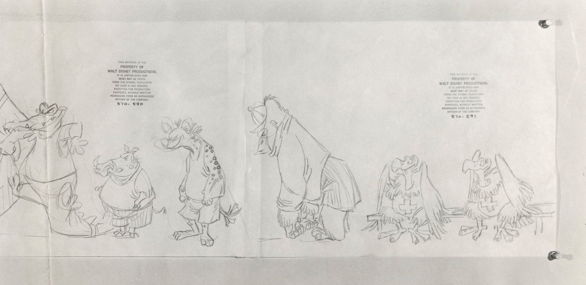 ABOUT THE MEDIUM: Photostat Model Sheets are reference guides used by animators to ensure consistency in character design, proportions, and expressions throughout a film. These printed sheets typically feature multiple poses, facial expressions, and turnarounds of a character, often photocopied from finalized drawings by lead animators. Model sheets help maintain uniformity in animation by providing a standard reference for all artists working on a character, preventing visual discrepancies between different scenes.