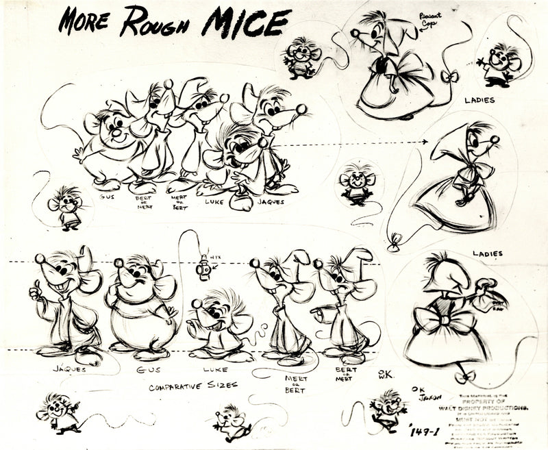 ABOUT THE MEDIUM: A model sheet is a group of character drawings illustrating different poses and expressions of a cartoon character. Because a number of artists worked on a single cartoon, these sheets were circulated to the animators to give a uniform look and feel to a character throughout a production.