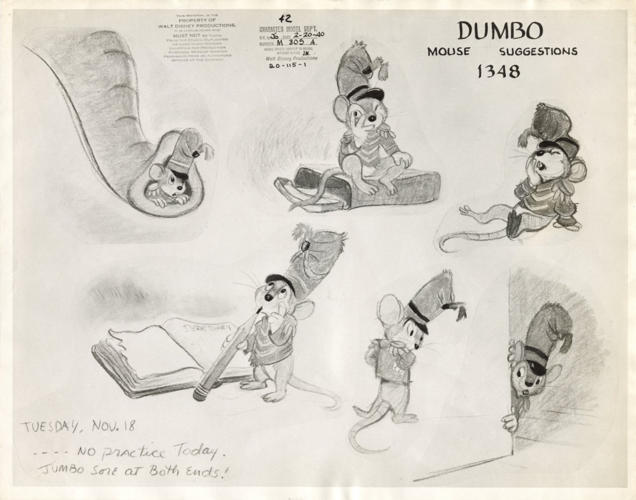 This piece shows signs of production wear: wrinkling along edges. The embedded date on this model sheet reads February 20th, 1940.