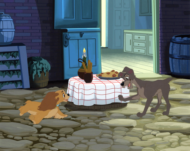 ABOUT THE IMAGE: Lady and the Tramp is a 1955 American animated romance film produced by Walt Disney and released to theaters on June 22, 1955, by Buena Vista Film Distribution, making it the first Disney animated film to not be distributed by RKO Radio Pictures. The 15th animated feature in the Disney Animated Canon, it was the first animated feature filmed in the CinemaScope Widescreen film process. The story, which was based the book Happy Dan the Whistling Dog by Ward Greene, centers on a female American Cocker Spaniel named Lady who lives with a refined, upper-middle-class family, and a male stray mutt named Tramp. A direct-to-video sequel, Lady and the Tramp II: Scamp's Adventure, was released in 2001. While not a runaway hit at first, it is considered one of Disney's greatest classics, as of today. Comes with certificate of authenticity.