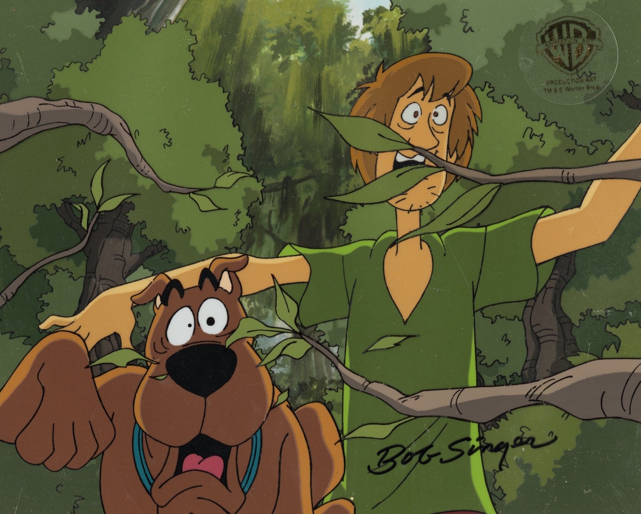 ABOUT THE IMAGE: The Hanna-Barbera cartoon, Scooby-Doo, Where Are You? was launched in 1969 and has had the longest run of a cartoon series. Over the years it’s been in 19 TV series (on CBS, ABC, the WB, Cartoon Network and Boomerang) and more than 40 animated films and two live action movies; one grossed $275 million worldwide. The show featured brainiac Velma, jock Fred, fashionista Daphne, hippie Shaggy, and the talking Great Dane Scooby-Doo, who would pile into their Mystery Machine van and hit the road searching for weird phenomena to solve. This original production cel is hand-signed by key animator Bob Singer and comes with a certificate of authenticity.