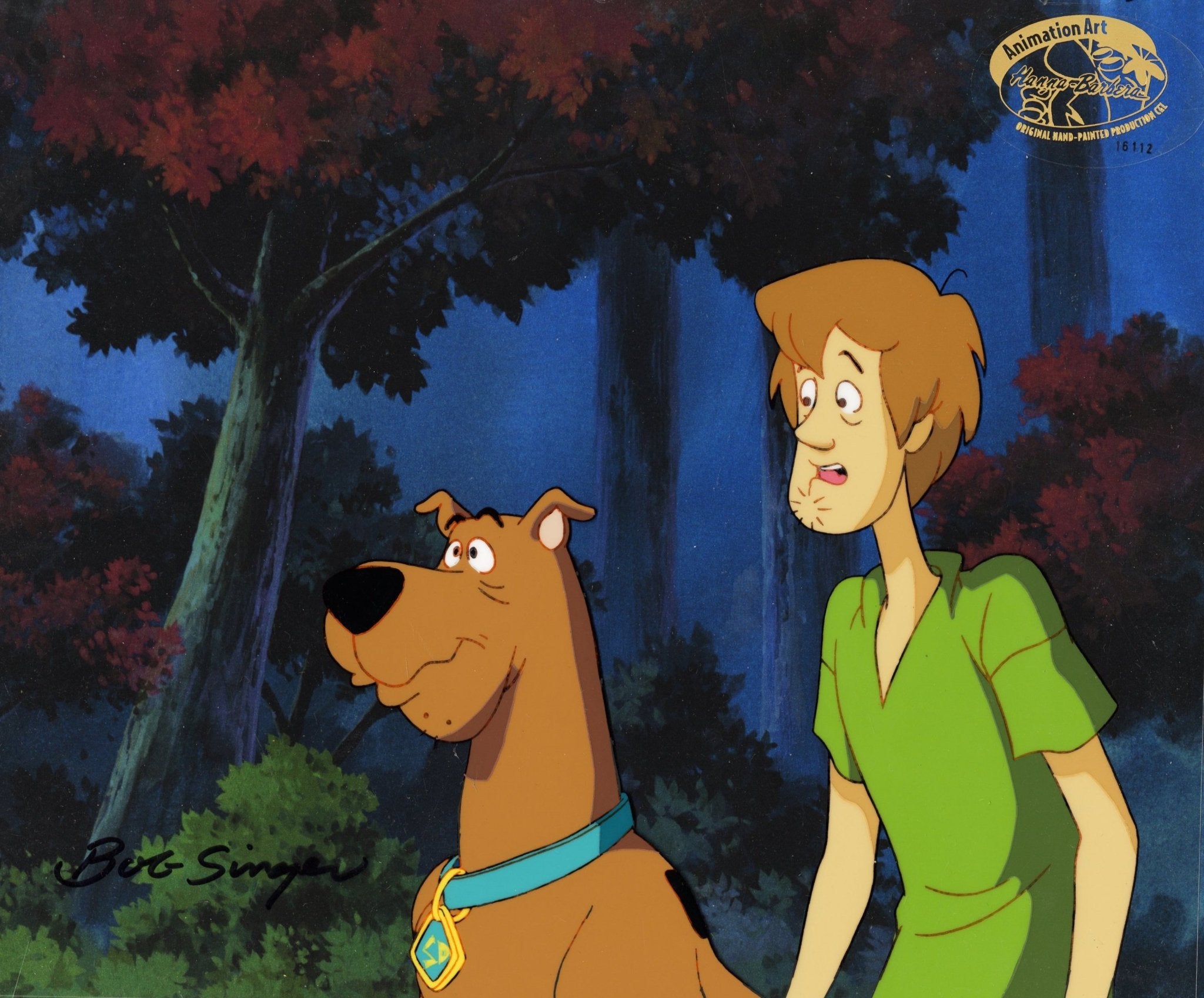 ABOUT THE IMAGE: The Hanna-Barbera cartoon, Scooby-Doo, Where Are You? was launched in 1969 and has had the longest run of a cartoon series. Over the years it’s been in 19 TV series (on CBS, ABC, the WB, Cartoon Network and Boomerang) and more than 40 animated films and two live action movies; one grossed $275 million worldwide. The show featured brainiac Velma, jock Fred, fashionista Daphne, hippie Shaggy, and the talking Great Dane Scooby-Doo, who would pile into their Mystery Machine van and hit the road searching for weird phenomena to solve. This original production cel is hand-signed by key animator Bob Singer and comes with a certificate of authenticity.