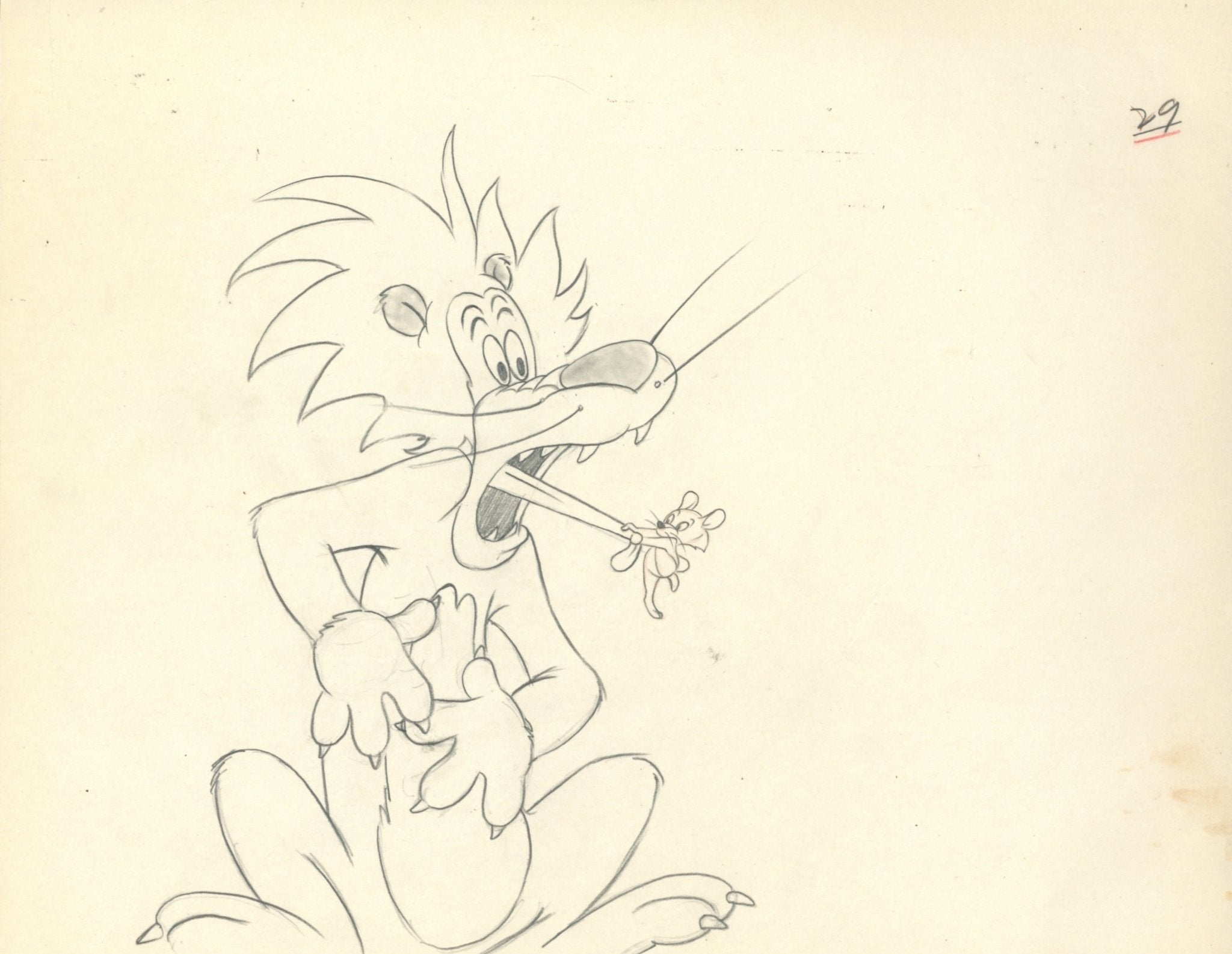 ABOUT THE IMAGE: Slap Happy Lion is a 1947 cartoon directed by Tex Avery and produced by Fred Quimby. It is about the tragic downfall of a lion from king of the beasts to a gibbering, pill-popping wreck. The short is narrated by a mouse whose torments are responsible for driving the lion crazy.