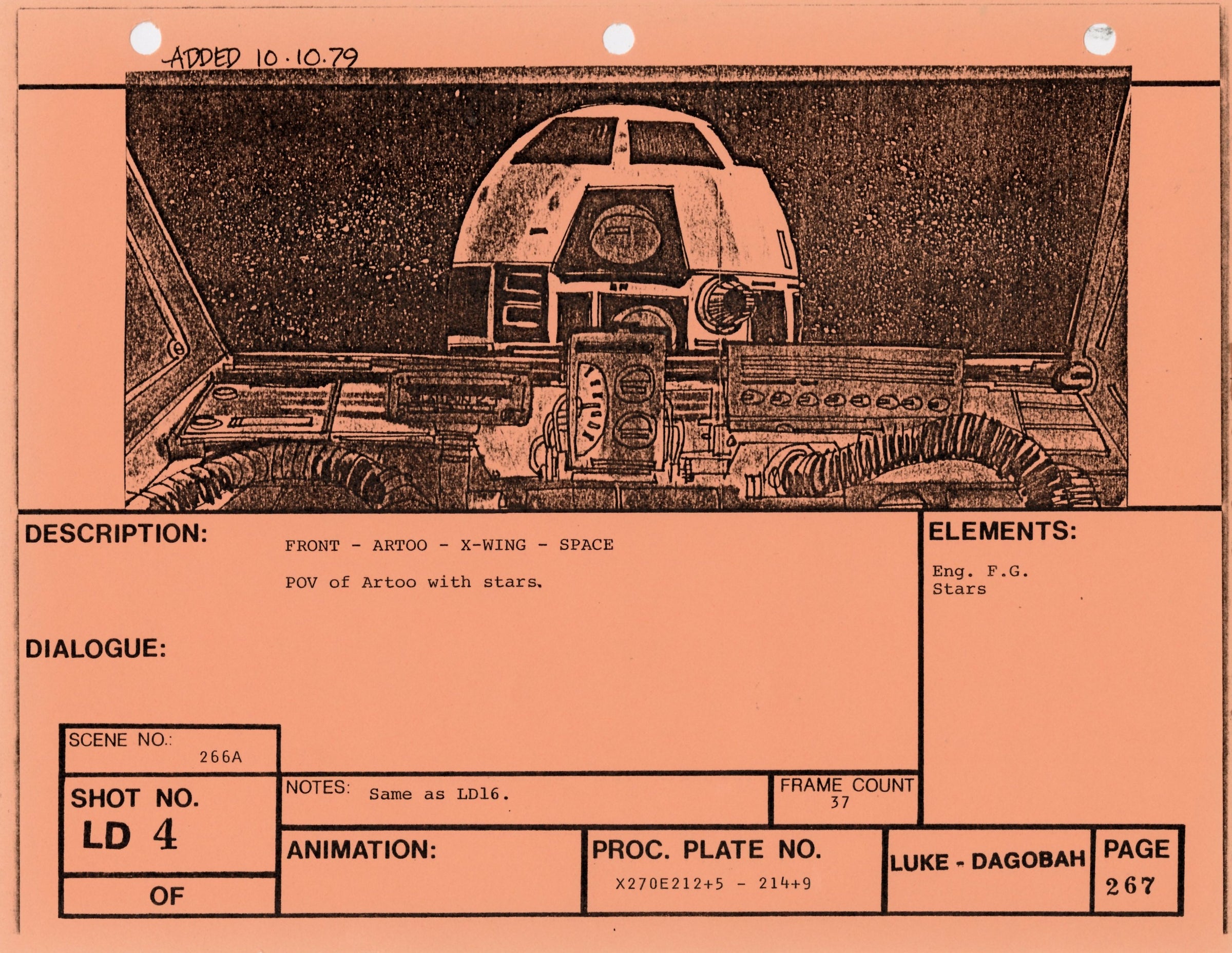 ABOUT THE ART: This storyboard print comes from the collection of award-winning miniature and optical effects artist Lorne Peterson. Peterson was invited by fellow model maker John Dykstra to work in the miniature and optical effects department of George Lucas' Star Wars: A New Hope, where he helped design and build the Star Destroyers, Imperial TIE fighters, and other classic vehicles. During pre-production, Peterson, Dykstra, and their cohort of fellow artists working under Lucas co-founded effects company Industrial Light & Magic.