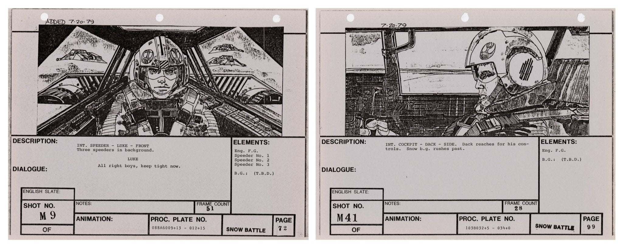 Star Wars: The Empire Strikes Back - VFX Storyboard Pair: Snow Battle 9+41