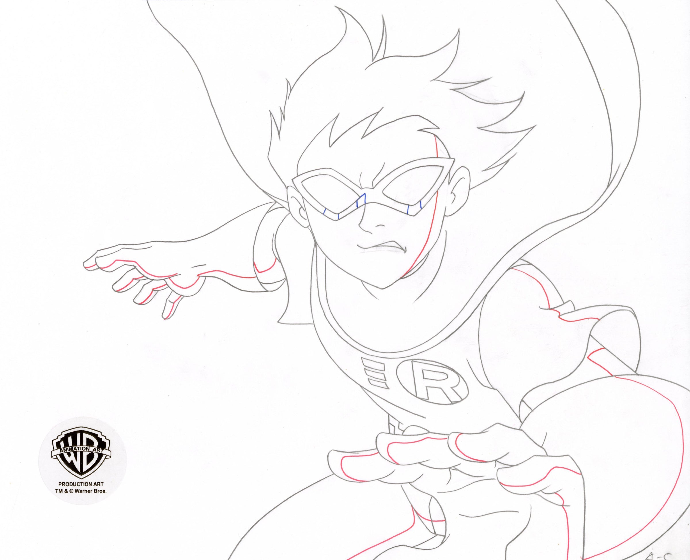 ABOUT THE IMAGE: Leading the crew in Teen Titans to protect Earth is Robin, formerly Batman's sidekick. He has no special powers, just a utility belt and his mind to help solve problems. His team members, Starfire, Raven, Cyborg and Beast Boy, live together in Titans Tower, situated in the West Coast haven Jump City. Each of them possesses unique abilities to help fight a new generation of villains ranging from super-powered hooligans to would-be world conquerors. This piece comes with a certificate of authenticity.