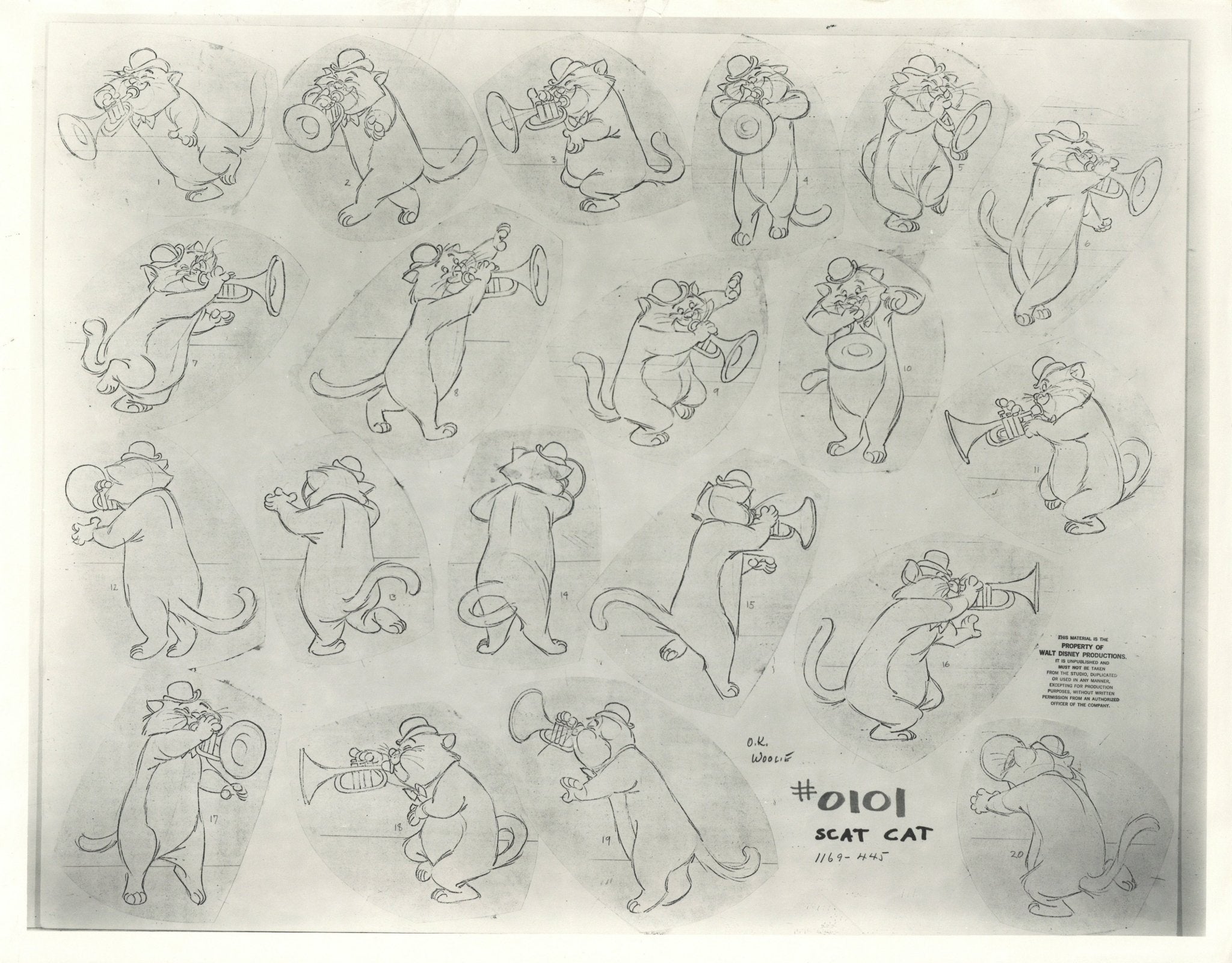 ABOUT THE IMAGE: A hand-written note from the film's director, Wolfgang Reitherman, reading "OK Woolie," has been reproduced at the bottom of this model sheet.