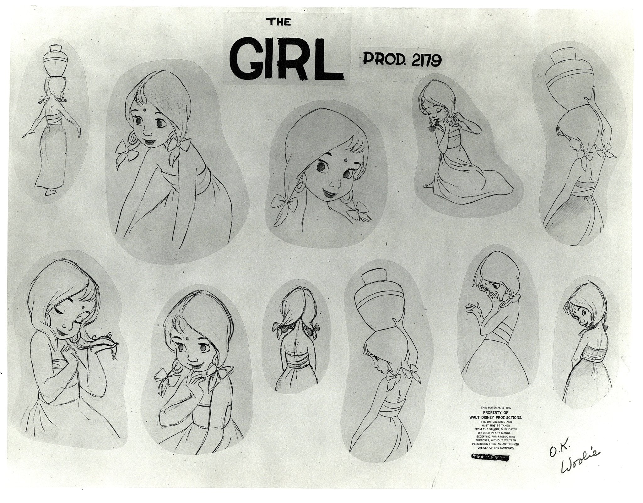 ABOUT THE MEDIUM: A model sheet is a group of character drawings illustrating different poses and expressions of a cartoon character. Because a number of artists worked on a single cartoon, these sheets were circulated to the animators to give a uniform look and feel to a character throughout a production.