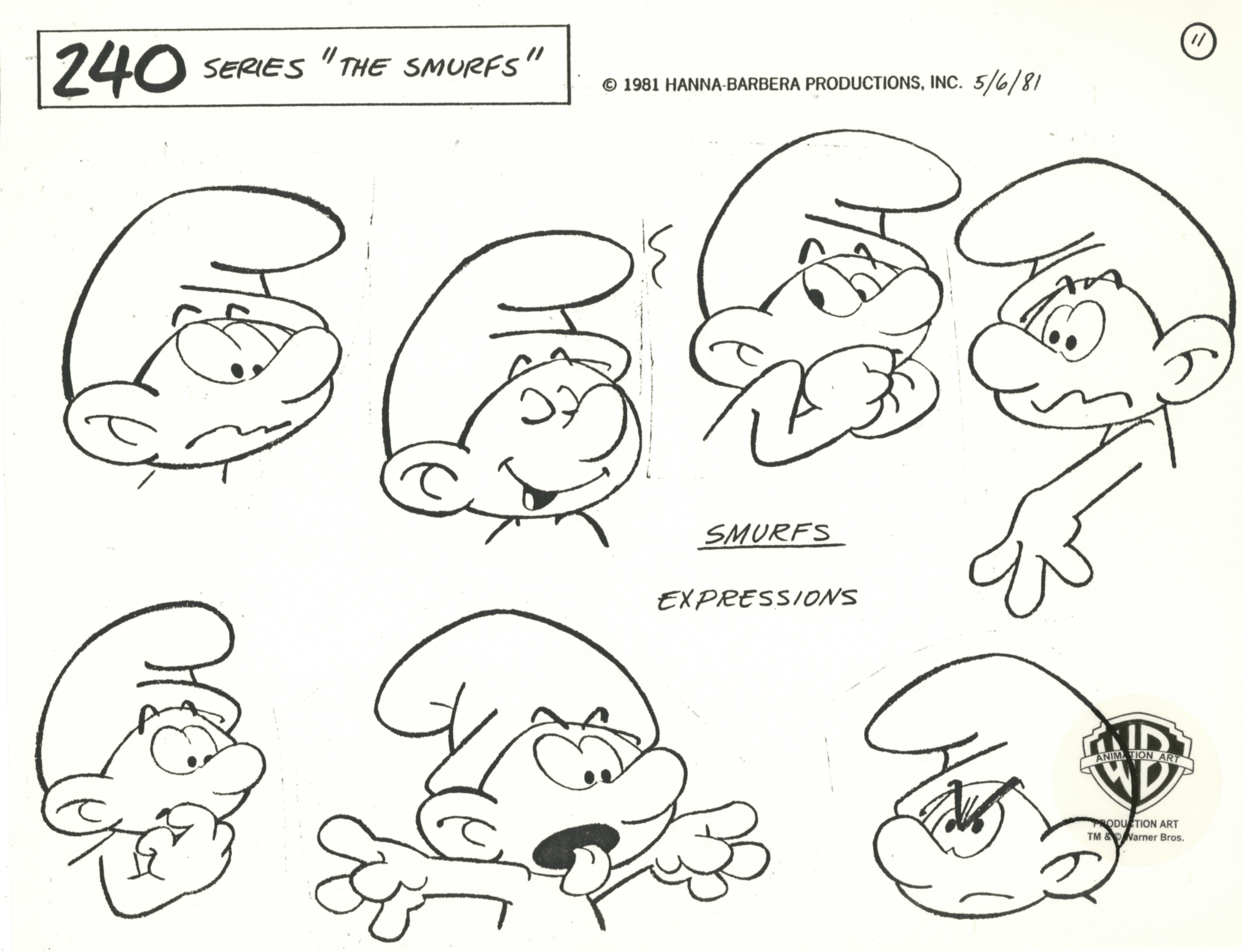 ABOUT THE MEDIUM: A model sheet is a group of character drawings illustrating different poses and expressions of a cartoon character. Because a number of artists worked on a single cartoon, these sheets were circulated to the animators to give a uniform look and feel to a character throughout a production.