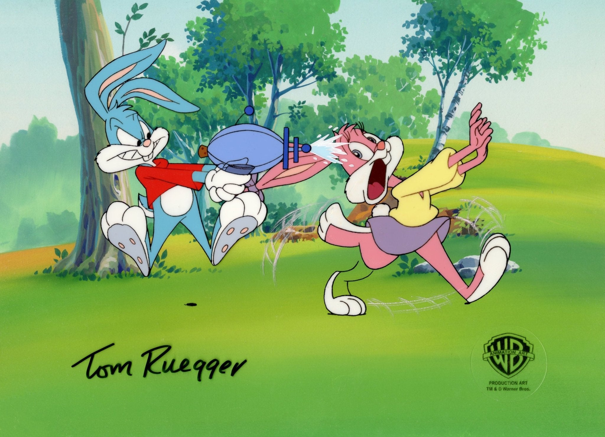 ABOUT THE IMAGE: Steven Spielberg Presents Tiny Toons, usually referred to as Tiny Toon Adventures, an American animated television series created by Tom Ruegger and produced by Amblin Entertainment and Warner Bros. Animation. In this series, a new generation of characters study at Acme Acres Looniversity under the instruction of the classic Looney Tunes characters. The leading characters are Buster and Babs Bunny (no relation) who, with their classmates, have a variety of adventures that are a mix of original stories, film and TV parodies and modern remakes of classic WB shorts. This piece comes with a certificate of authenticity.