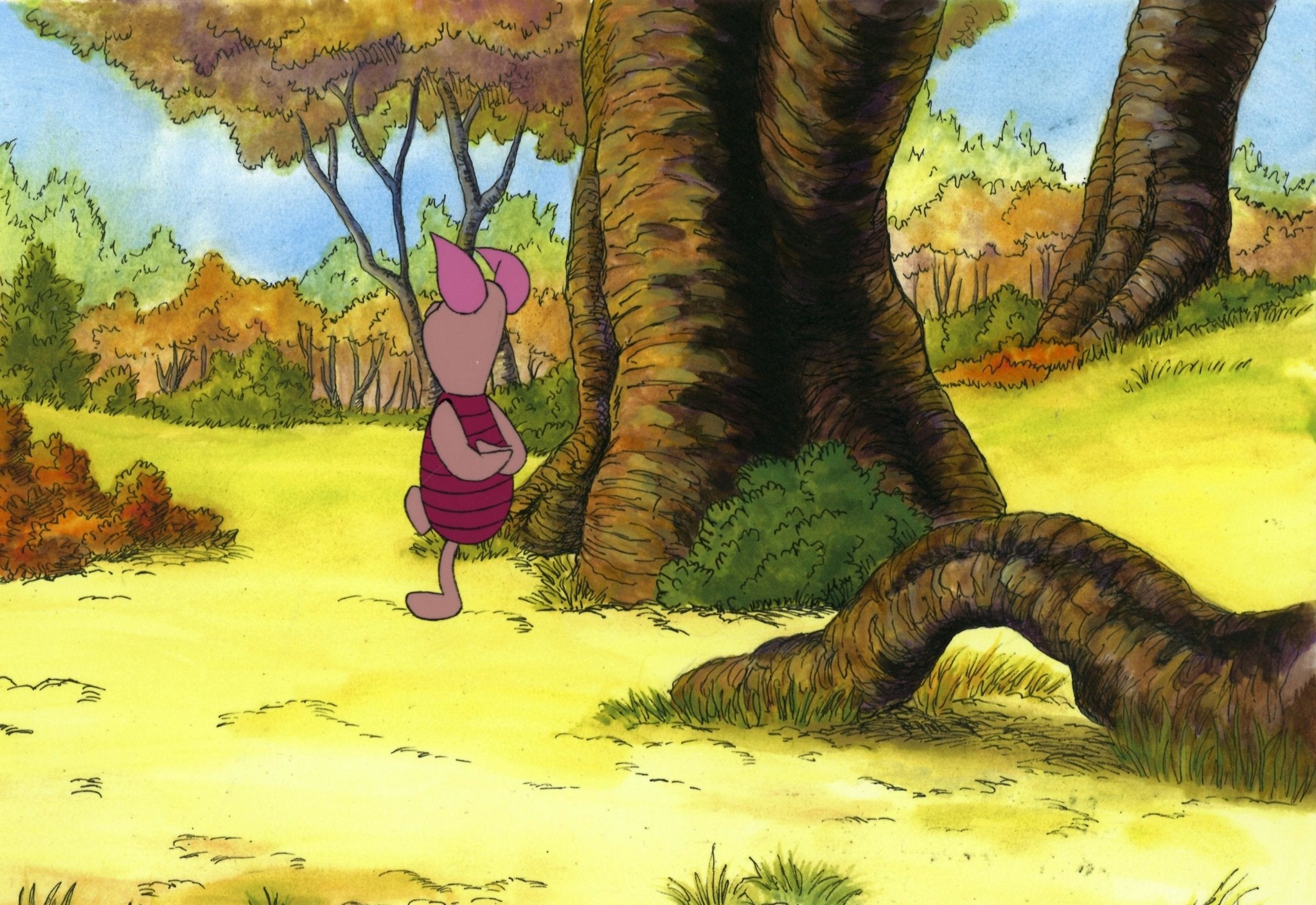 ABOUT THE MEDIUM: Original production cels are one-of-a-kind pieces of art that were used in the creation of an animated film or television show. Each has been hand-painted by studio artists on a piece of celluloid acetate, and has been photographed over a background painting to create a frame of the finished production.