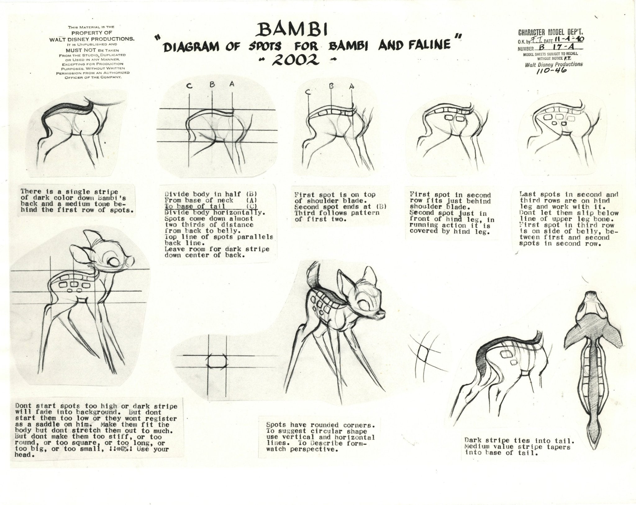 Bambi Original Stat Model Sheet: Diagram of Spots for Bambi