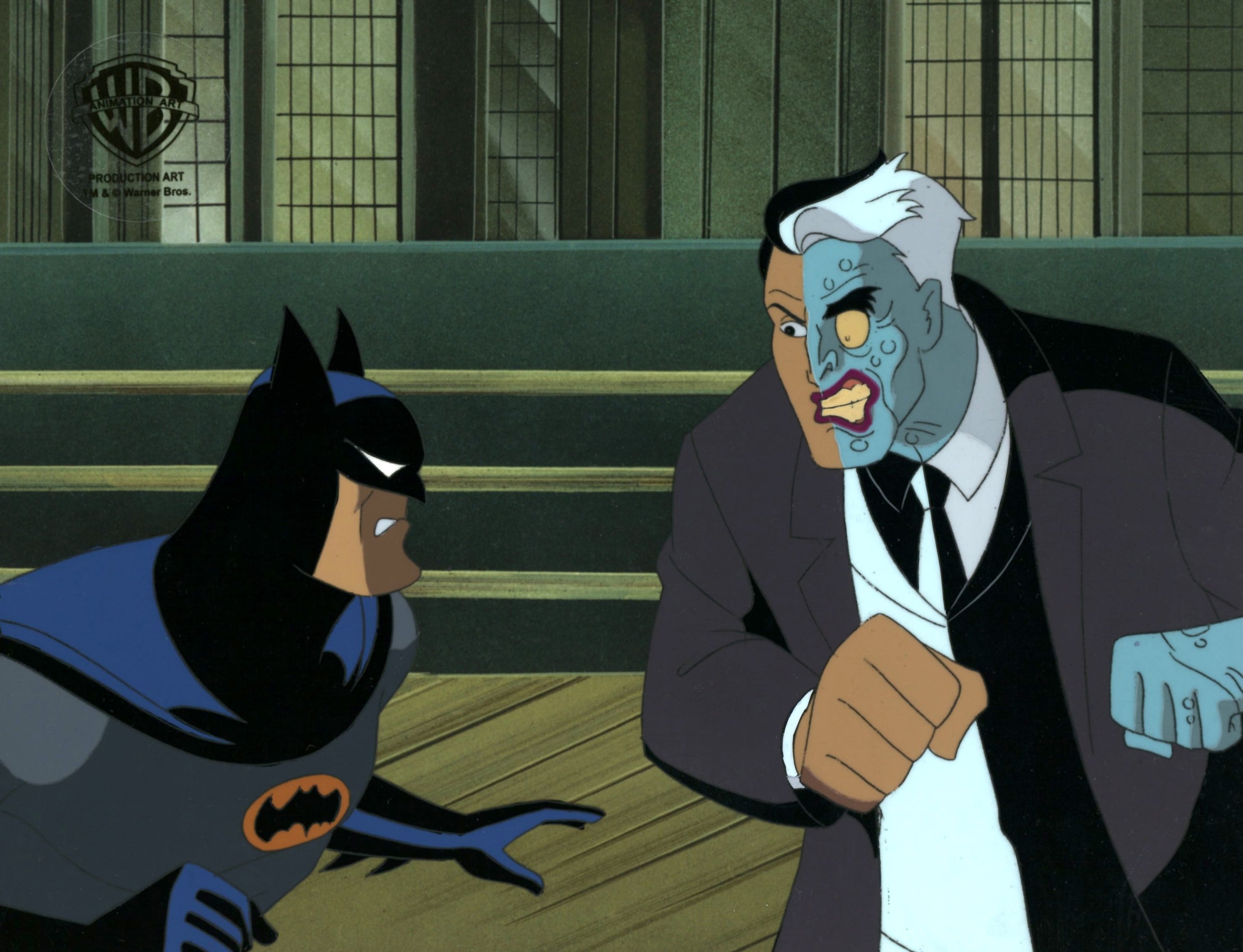 Batman The Animated Series Original Production Cel with Matching Drawings: Batman, Two-Face