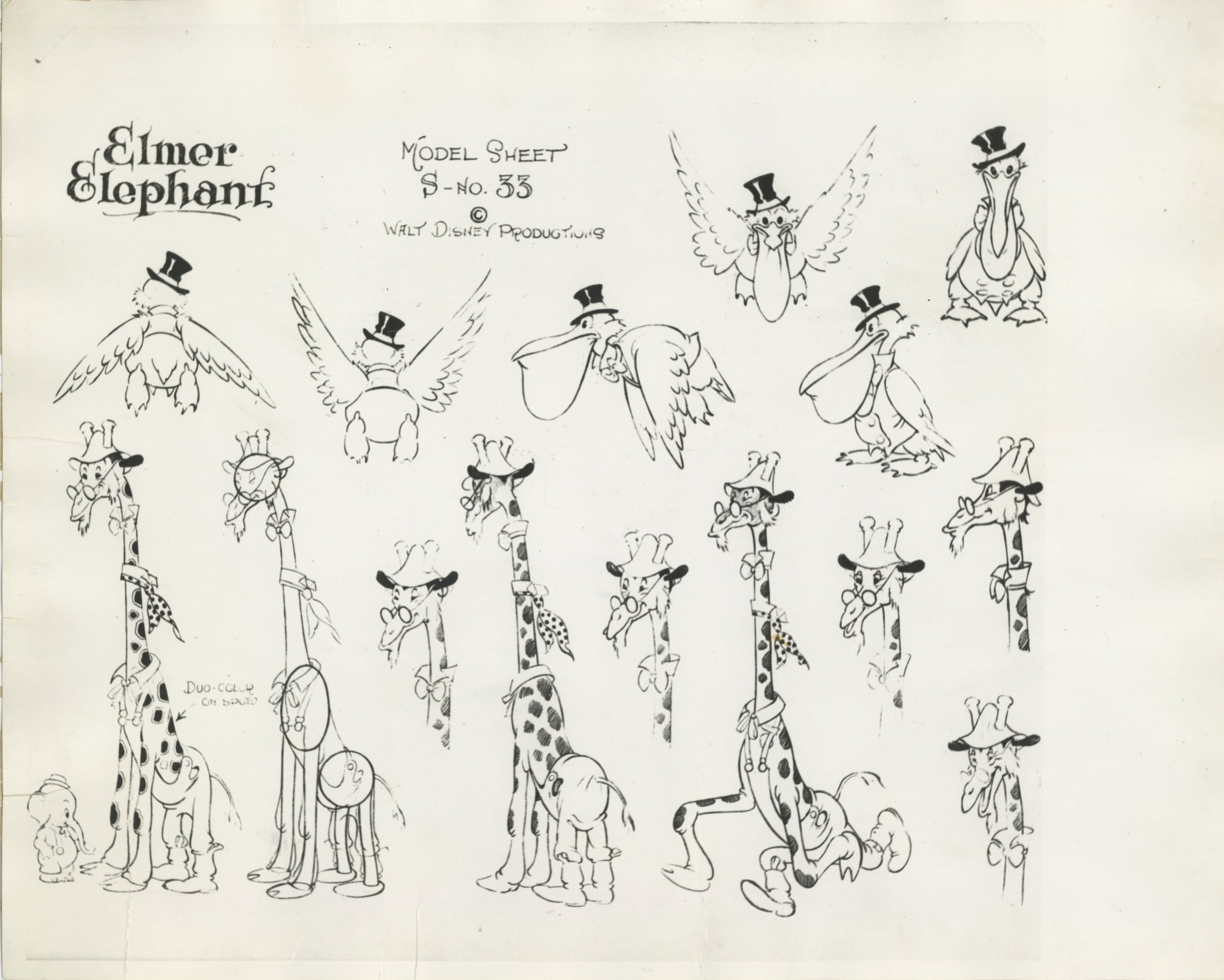 Elmer Elephant Original Stat Model Sheet: Joe Giraffe and Pelicans