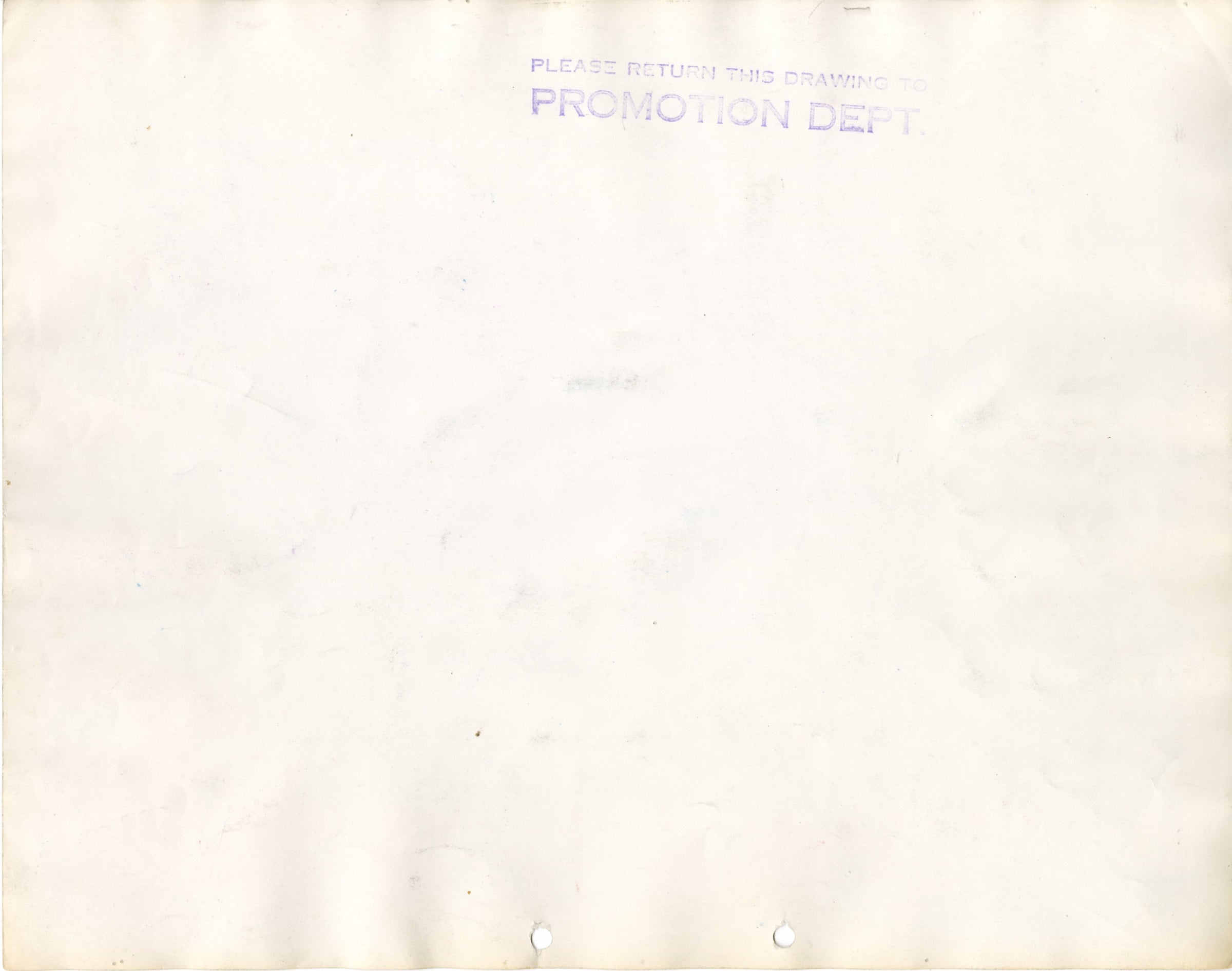 SPECIAL NOTES: A stamp reading "PLEASE RETURN THIS DRAWING TO PROMOTION DEPT." is visible on the back of this model sheet.