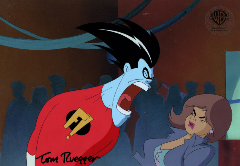 ABOUT THE IMAGE: Freakazoid! is an American superhero animated television series created by Bruce Timm and Paul Dini and developed by Tom Ruegger for the Kids' WB programming block of The WB. The series chronicles the adventures of the title character, Freakazoid, a crazy superhero who battles with an array of supervillains. The show also features mini-episodes of adventures of other bizarre superheroes. The show was produced by Amblin Entertainment and Warner Bros. Animation. The cartoon was the third animated series produced by the collaboration of Steven Spielberg and Warner Bros. Animation during the animation renaissance of the 1990s. This piece comes with a certificate of authenticity.