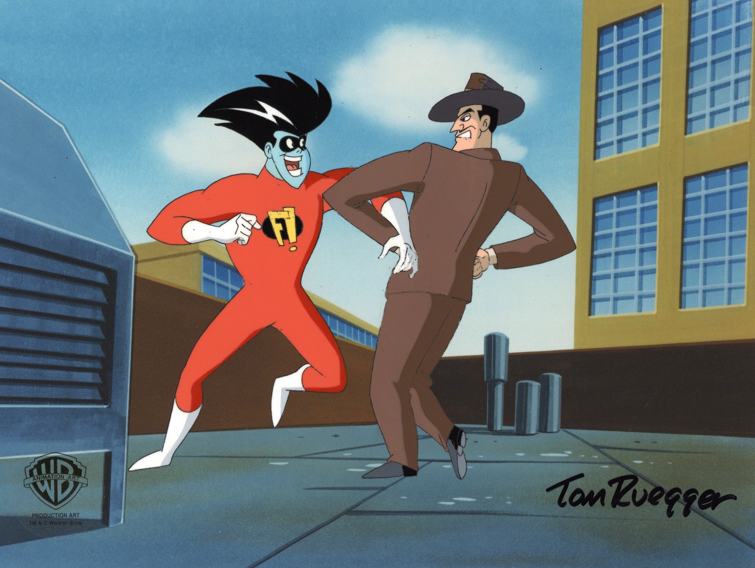 ABOUT THE IMAGE: Freakazoid! is an American superhero animated television series created by Bruce Timm and Paul Dini and developed by Tom Ruegger for the Kids' WB programming block of The WB. The series chronicles the adventures of the title character, Freakazoid, a crazy superhero who battles with an array of supervillains. The show also features mini-episodes of adventures of other bizarre superheroes. The show was produced by Amblin Entertainment and Warner Bros. Animation. The cartoon was the third animated series produced by the collaboration of Steven Spielberg and Warner Bros. Animation during the animation renaissance of the 1990s. This piece comes with a certificate of authenticity.