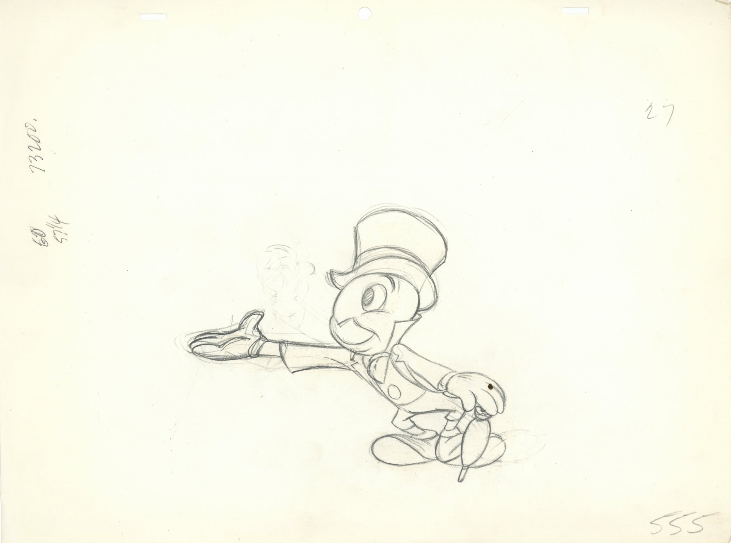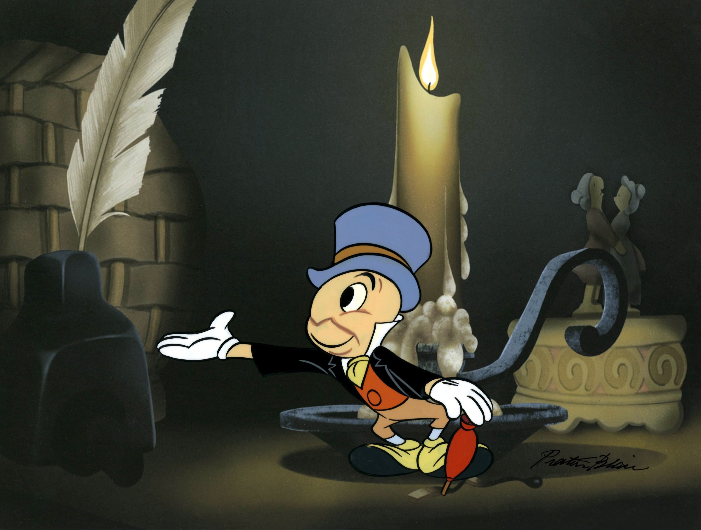 Jiminy Cricket Original Production Cel with Matching Drawing Signed by Preston Blair