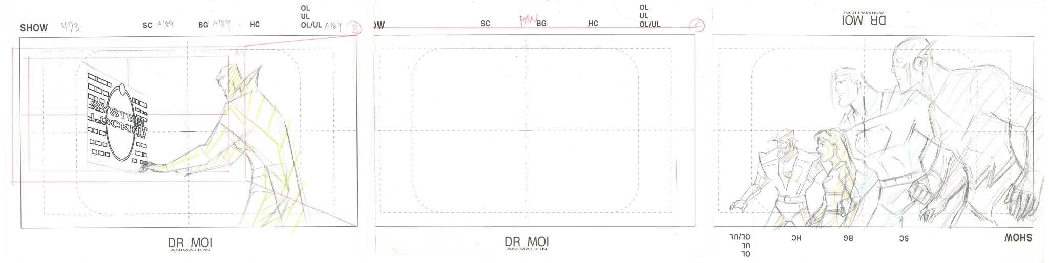 Justice League Unlimited Original Production Drawing (Panoramic Layout): Martian Manhunter, Green Arrow, Supergirl, Superman, Flash