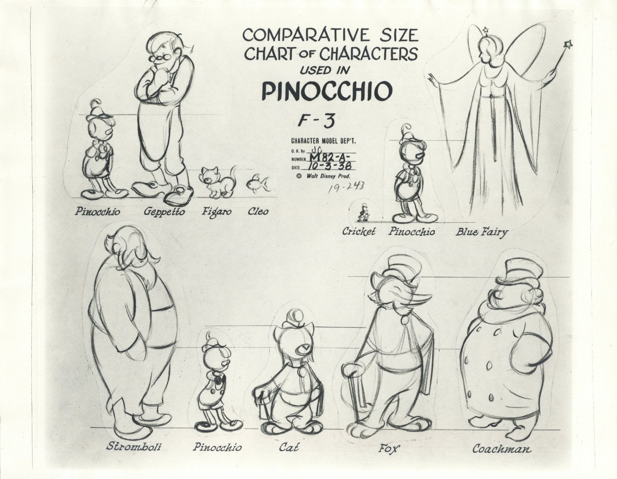 Pinocchio Original Stat Model Sheet: Comparative Size Chart