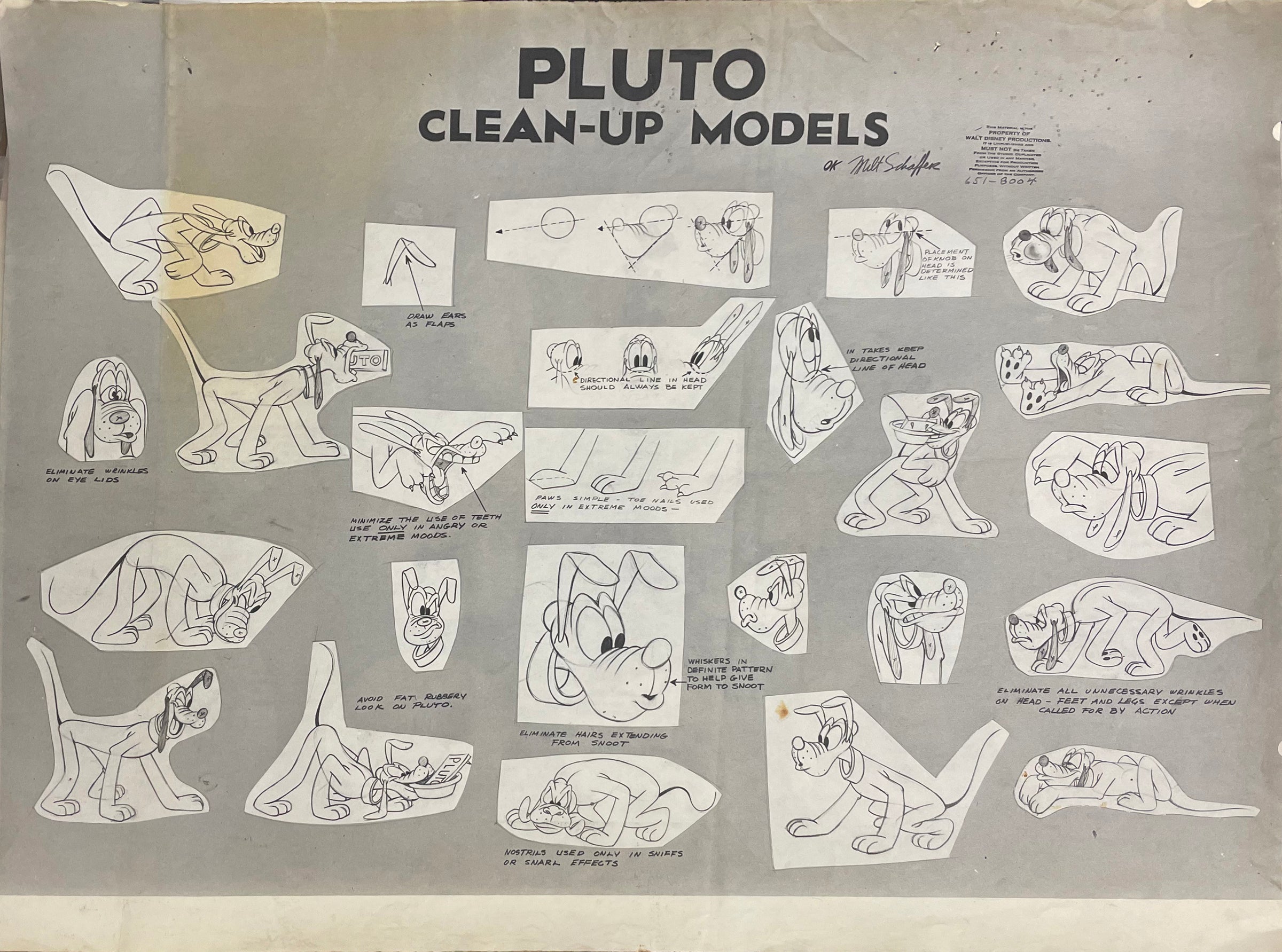 This photostat model sheet comes from the estate of veteran Disney animator and director Jack Kinney, who was awarded a Winsor McCay Award in 1983 in recognition for his lifetime contributions to animation. Kinney was the primary director of the Goofy series, responsible a total of 39 entries. His most notable creations were the Goofy How to... shorts, where the character demonstrated how to play various popular sports. Kinney also directed two entries in the Pluto series, as well as directing four entries in the Donald Duck series, including Der Fuehrer's Face (1943), a wartime satire of Adolf Hitler, which became the only Donald Duck short to win an Academy Award.