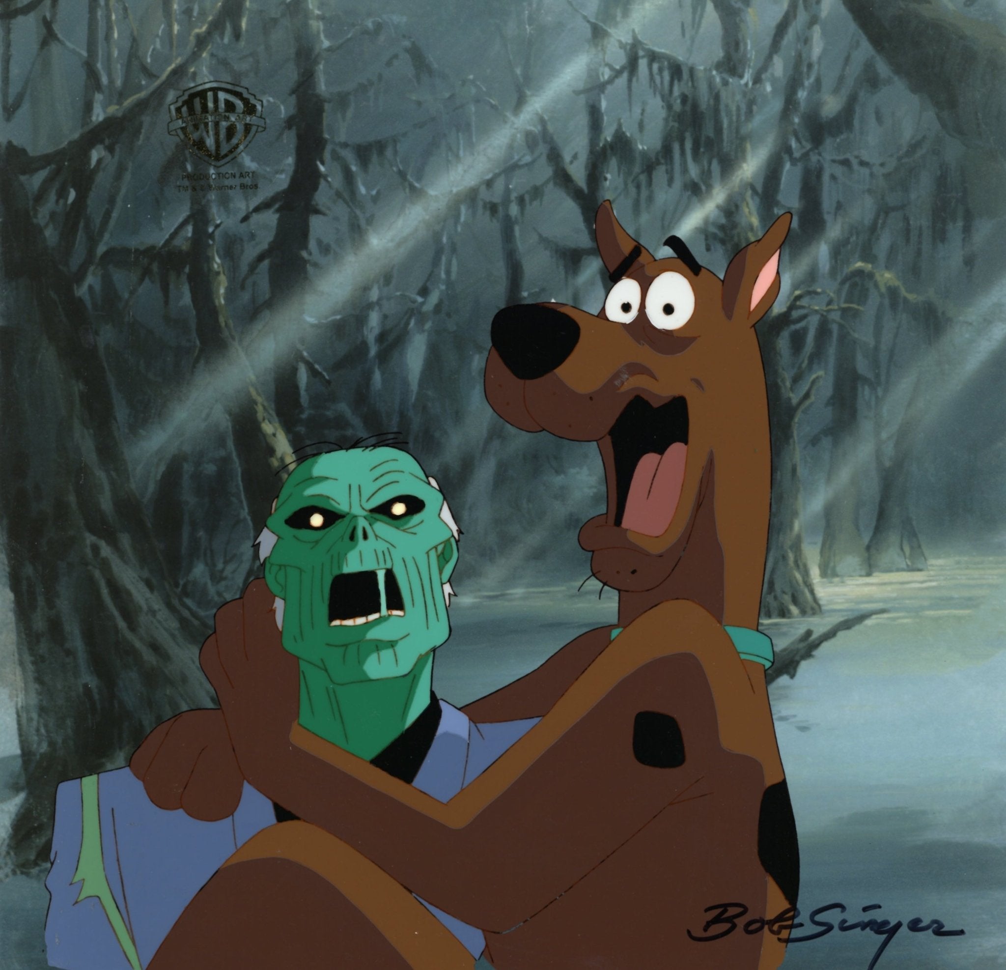 ABOUT THE IMAGE: The Hanna-Barbera cartoon, Scooby-Doo, Where Are You? was launched in 1969 and has had the longest run of a cartoon series. Over the years it’s been in 19 TV series (on CBS, ABC, the WB, Cartoon Network and Boomerang) and more than 40 animated films and two live action movies; one grossed $275 million worldwide. The show featured brainiac Velma, jock Fred, fashionista Daphne, hippie Shaggy, and the talking Great Dane Scooby-Doo, who would pile into their Mystery Machine van and hit the road searching for weird phenomena to solve. This original production cel is hand-signed by key animator Bob Singer and comes with a certificate of authenticity.