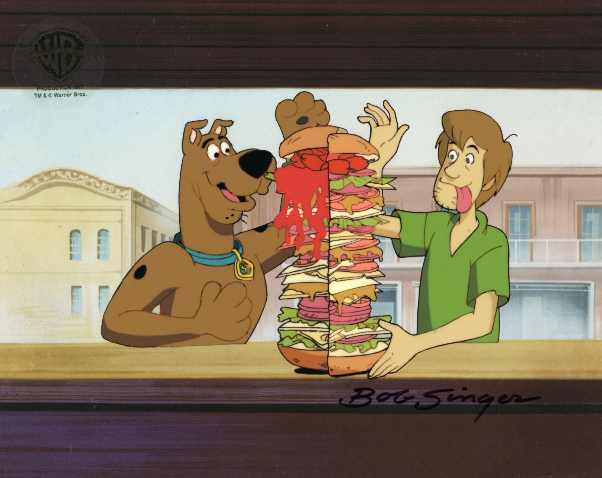 ABOUT THE IMAGE: The Hanna-Barbera cartoon, Scooby-Doo, Where Are You? was launched in 1969 and has had the longest run of a cartoon series. Over the years it’s been in 19 TV series (on CBS, ABC, the WB, Cartoon Network and Boomerang) and more than 40 animated films and two live action movies; one grossed $275 million worldwide. The show featured brainiac Velma, jock Fred, fashionista Daphne, hippie Shaggy, and the talking Great Dane Scooby-Doo, who would pile into their Mystery Machine van and hit the road searching for weird phenomena to solve. This original production cel is hand-signed by key animator Bob Singer and comes with a certificate of authenticity.