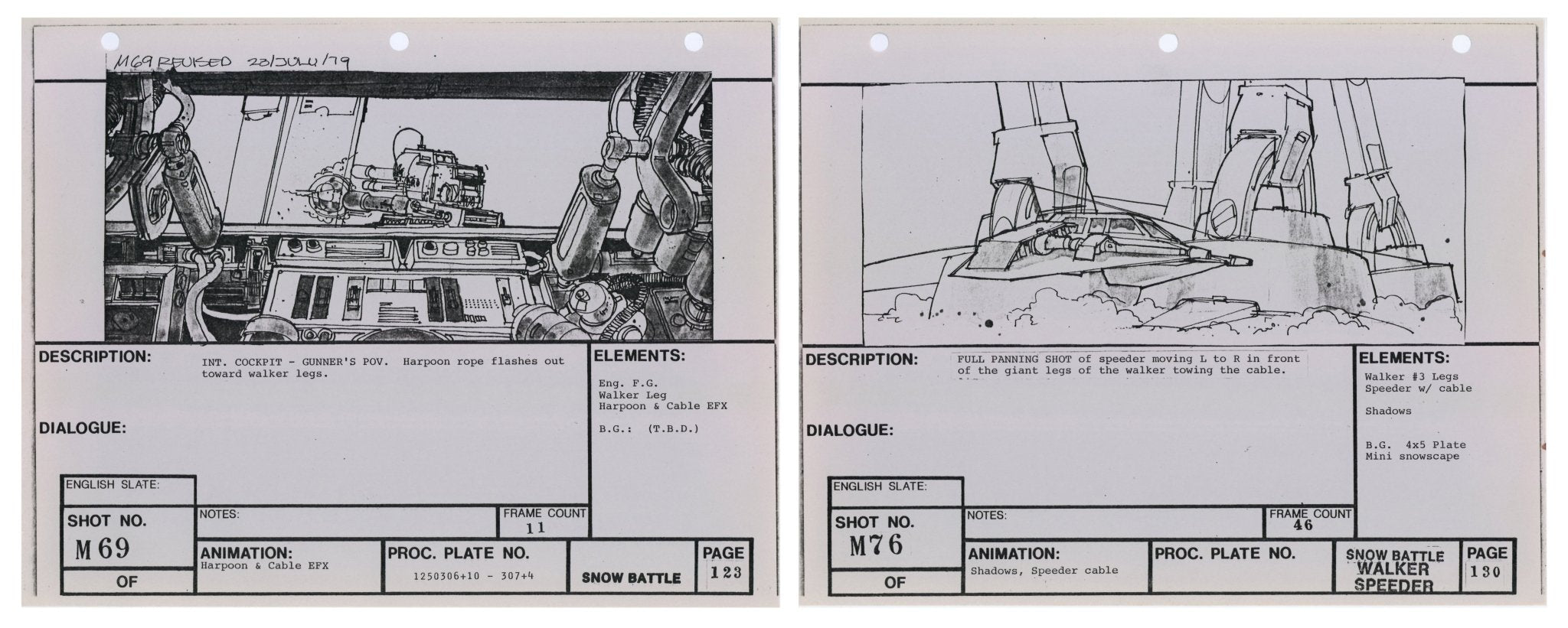 Star Wars: The Empire Strikes Back - VFX Storyboard Pair: Snow Battle 69+76